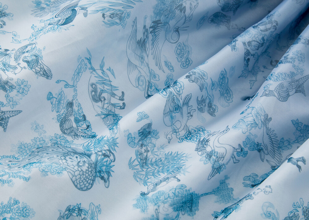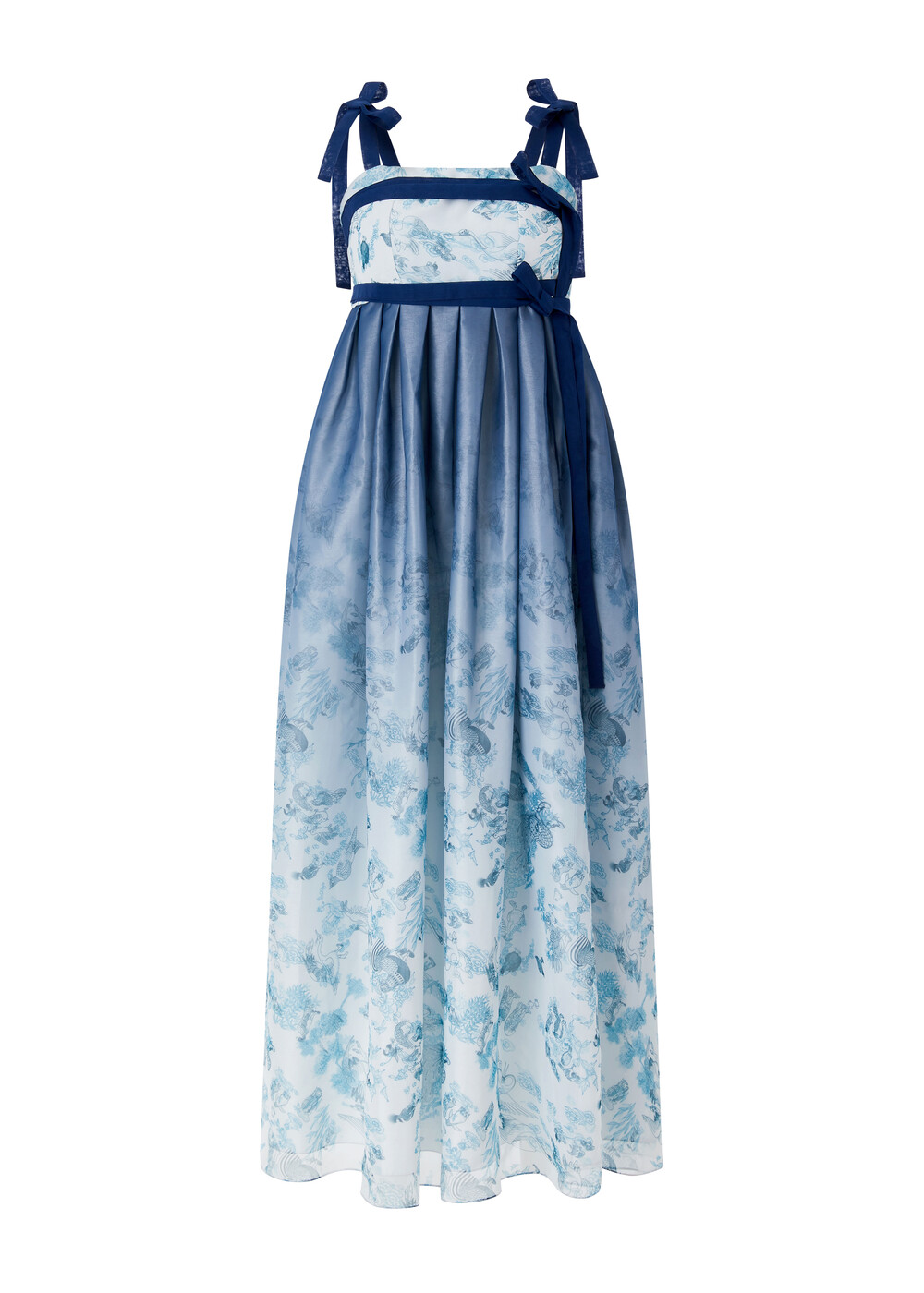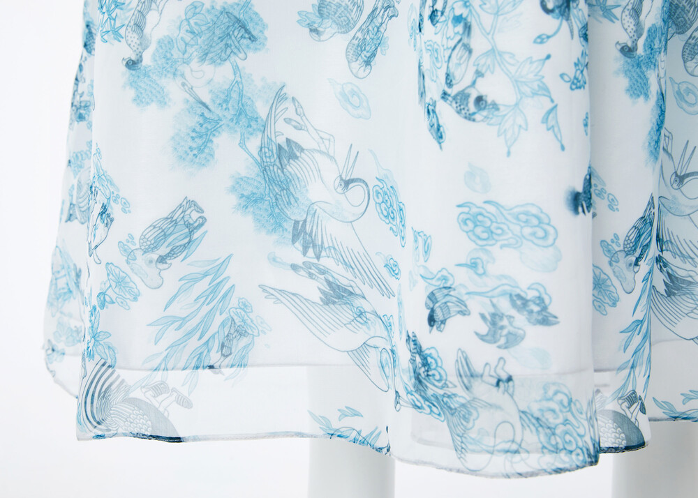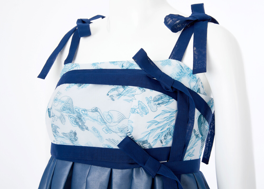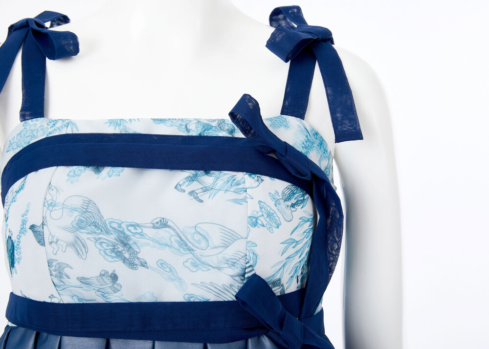화조도 그라데이션 드레스는 이전경 작가님의 화조도 패턴을 사용한 그라데이션 드레스로,