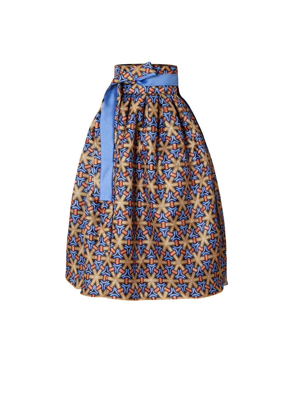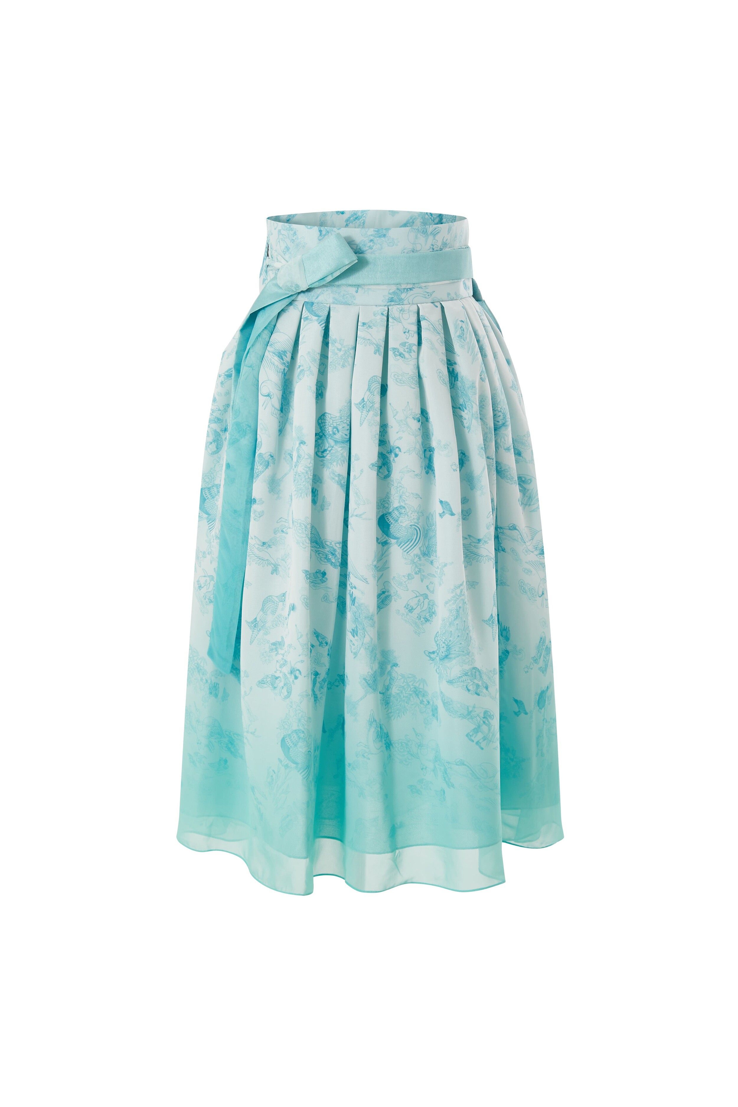 K. 베이비 블루 화조도 그라데이션 쉬폰 허리치마