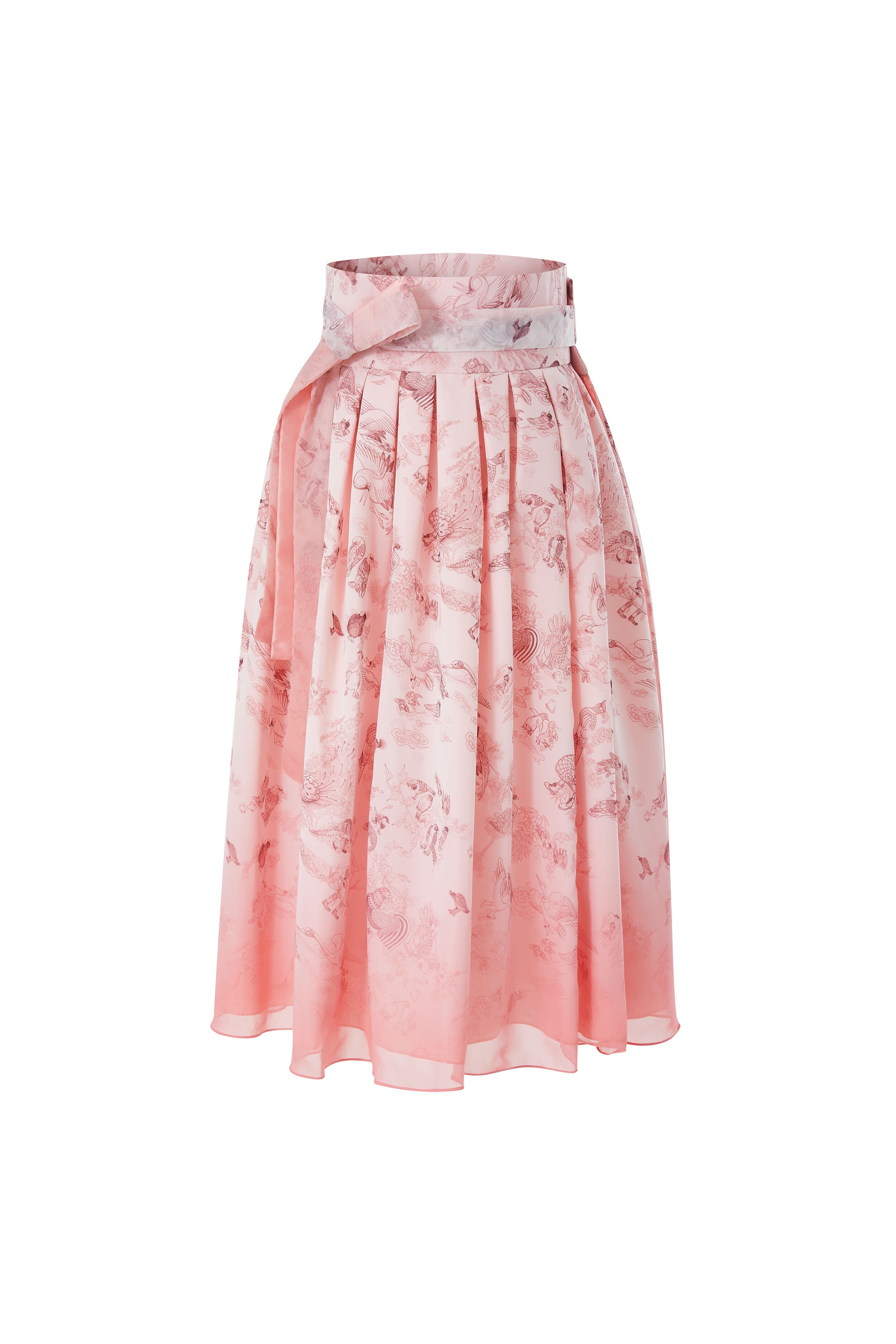 J. 베이비 핑크 화조도 그라데이션 쉬폰 허리치마