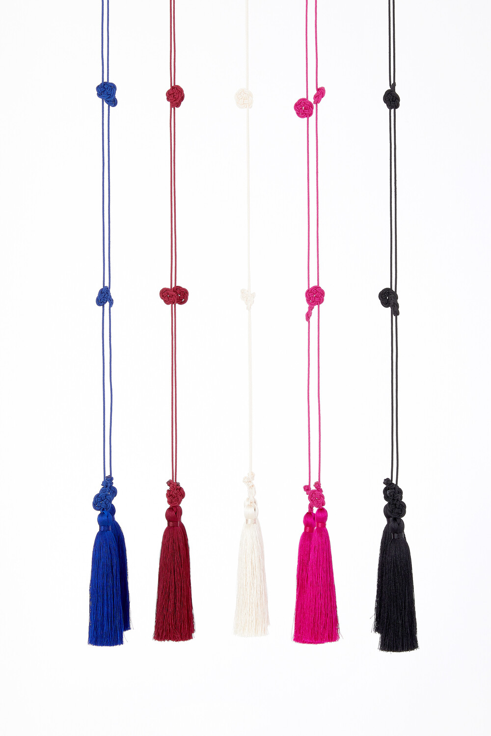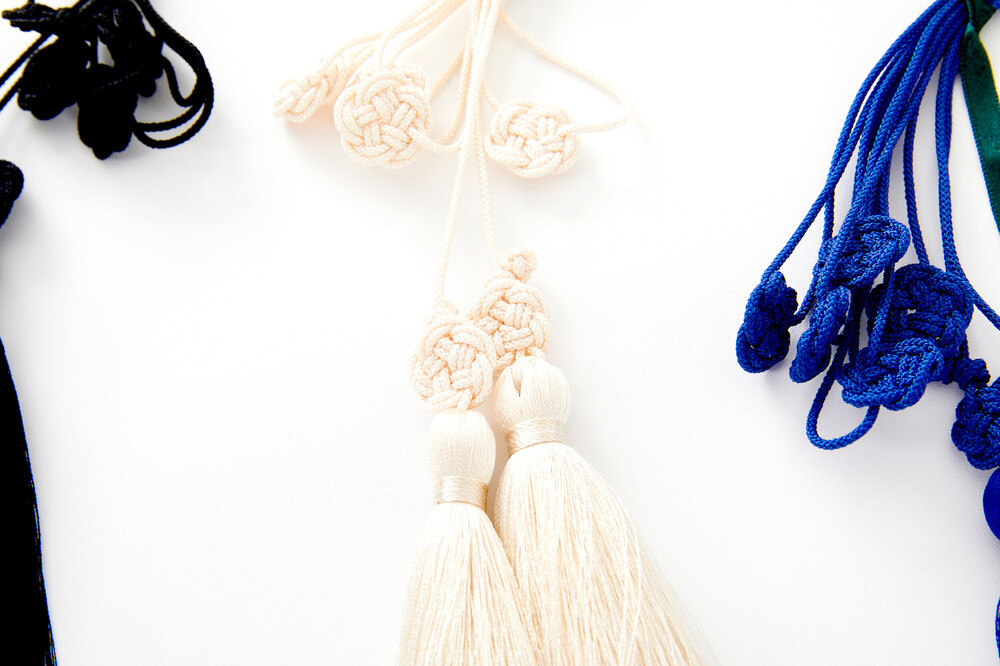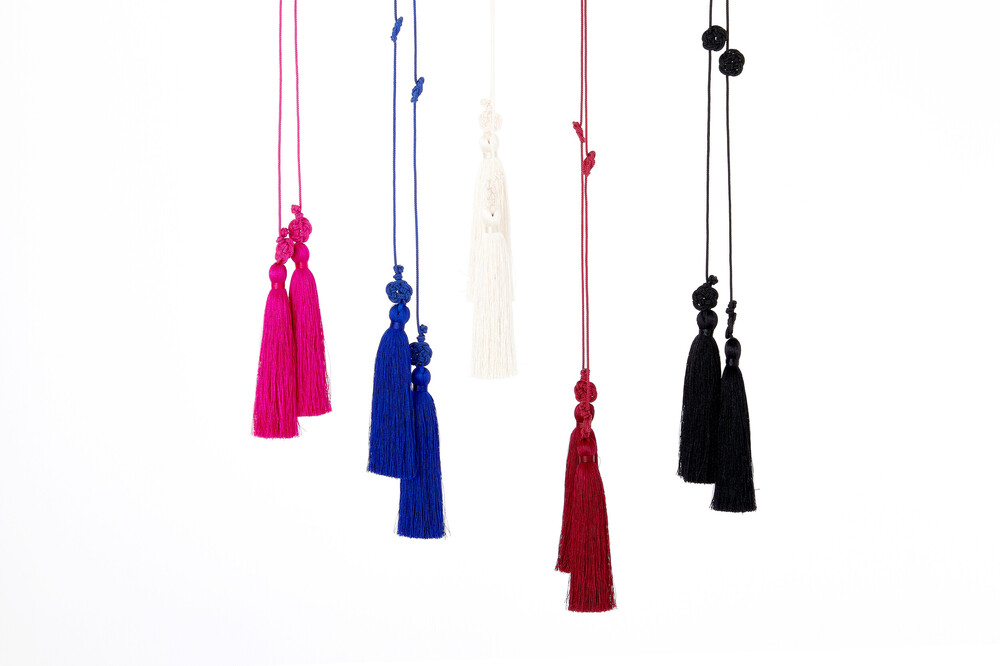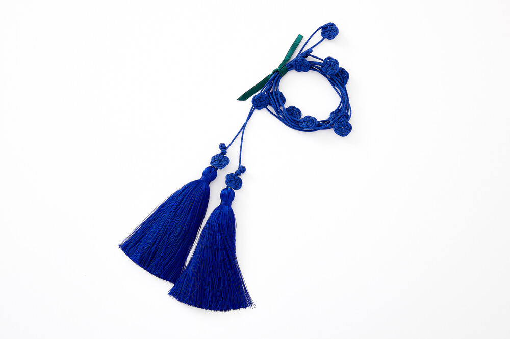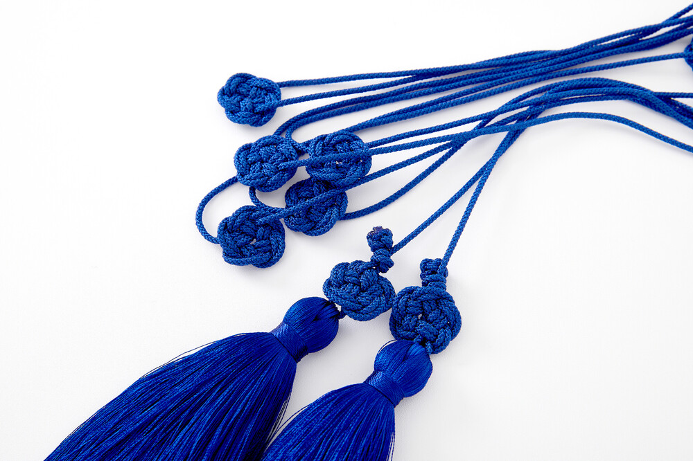 한국의 옛 복식에서 겉옷에 착용하던 가느다란 띠에 줄줄이 꽃 매듭을 지어 살피꽃밭을 형상화 한 세조대입니다.