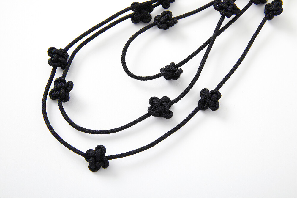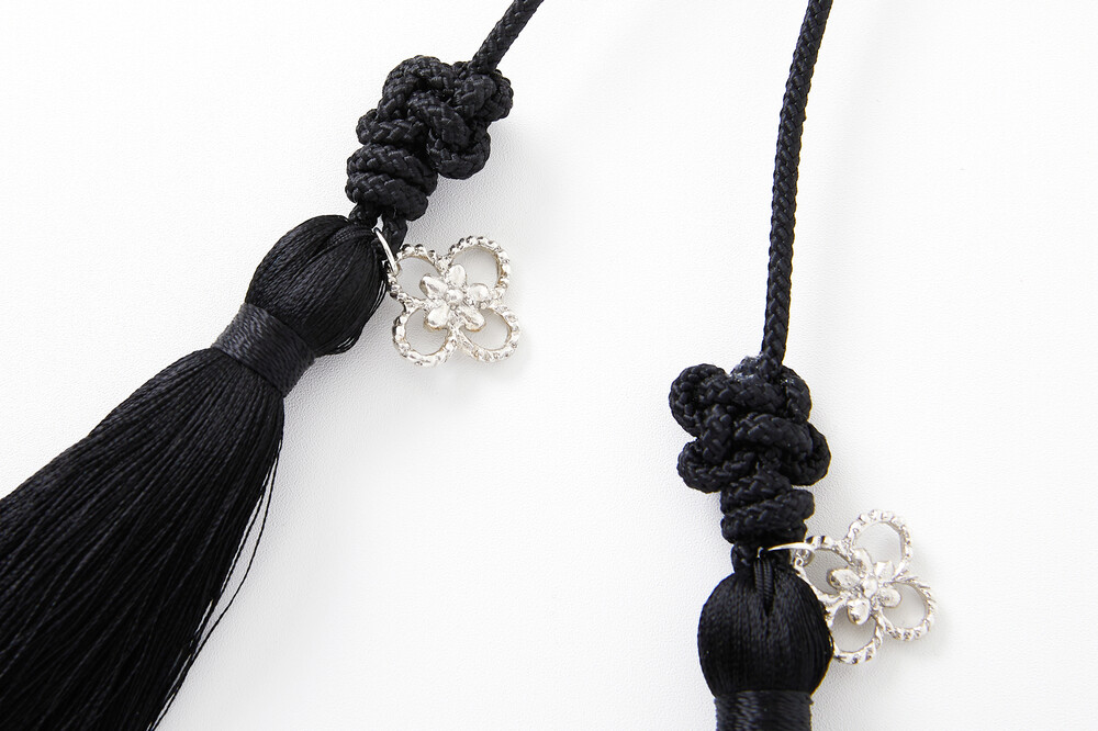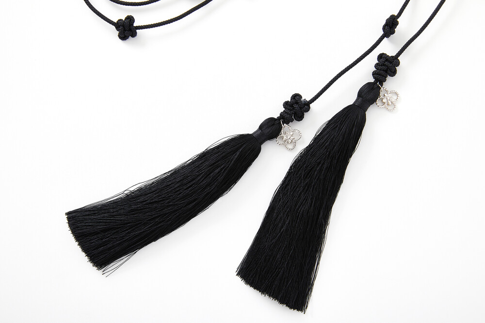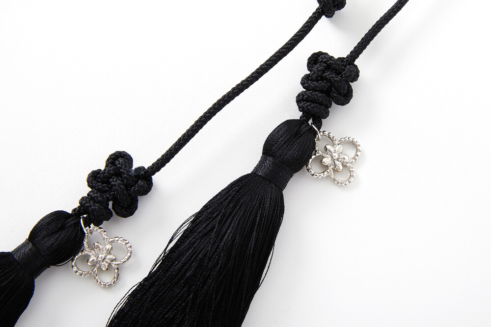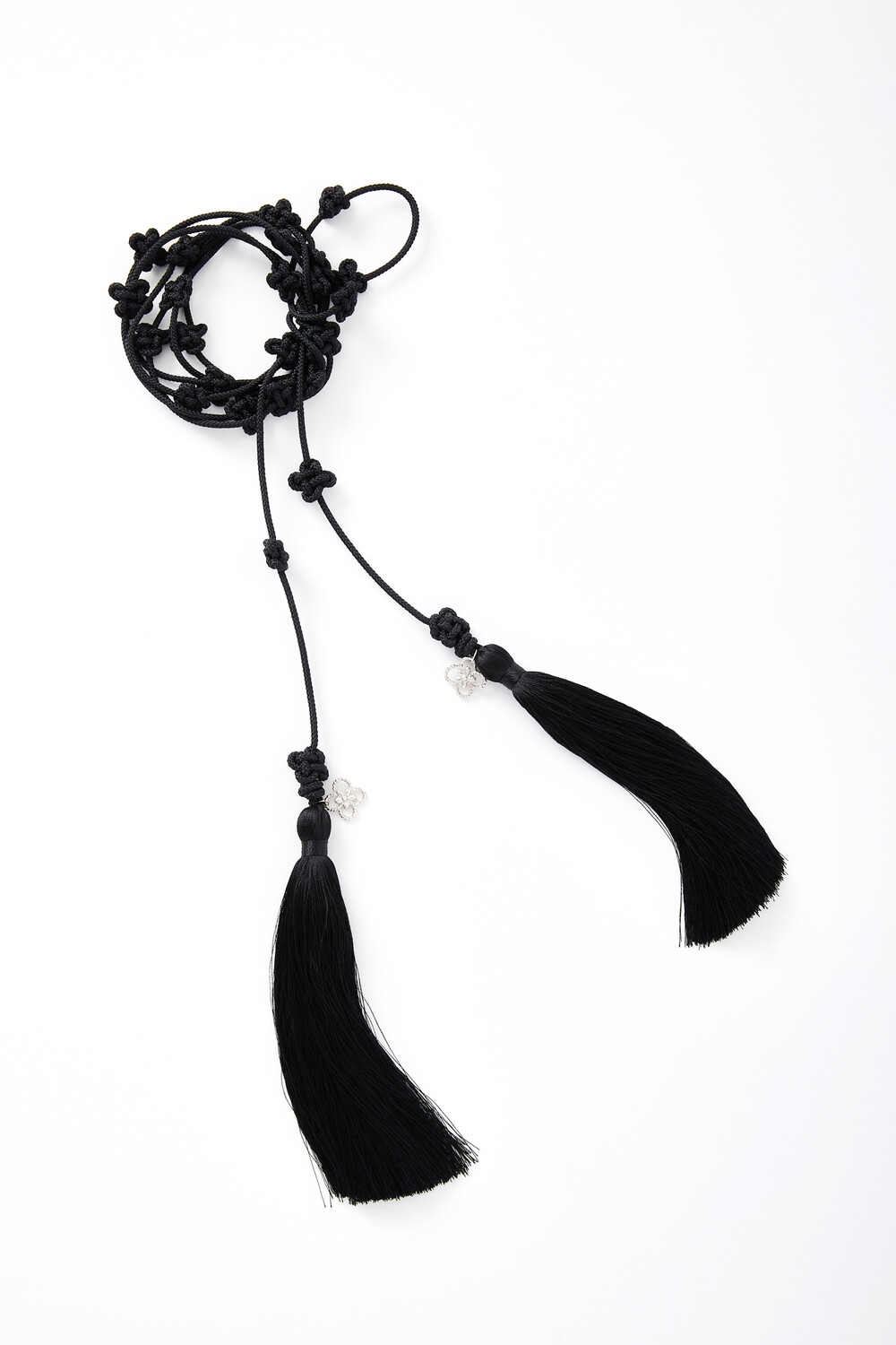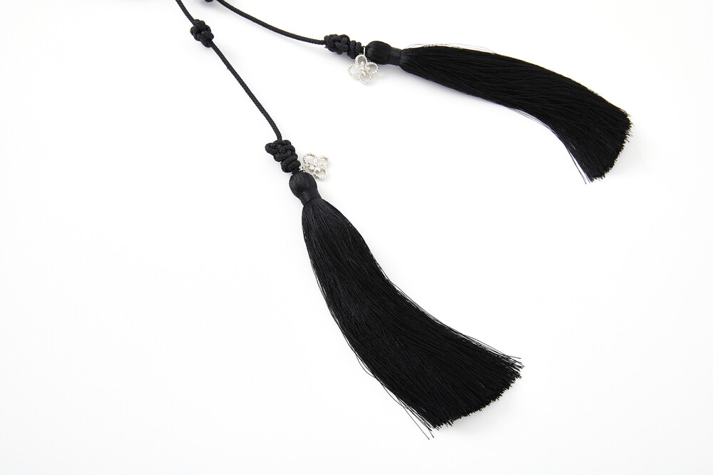 은꽃이 매듭 사이에 들어간 검정 세조대 입니다.