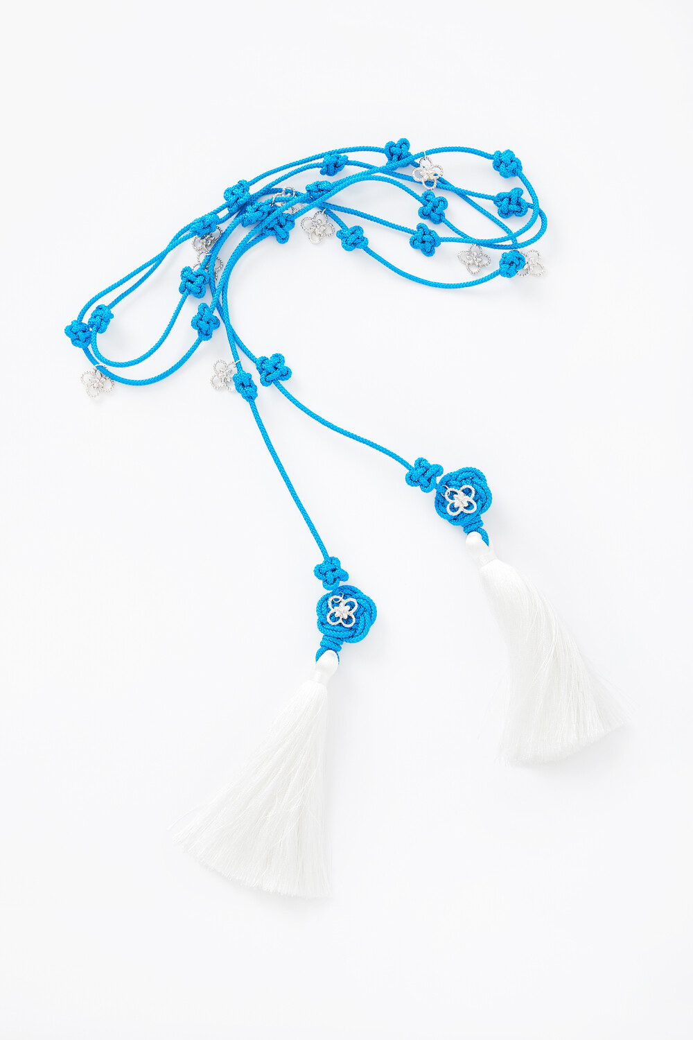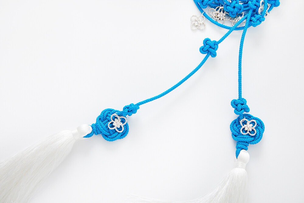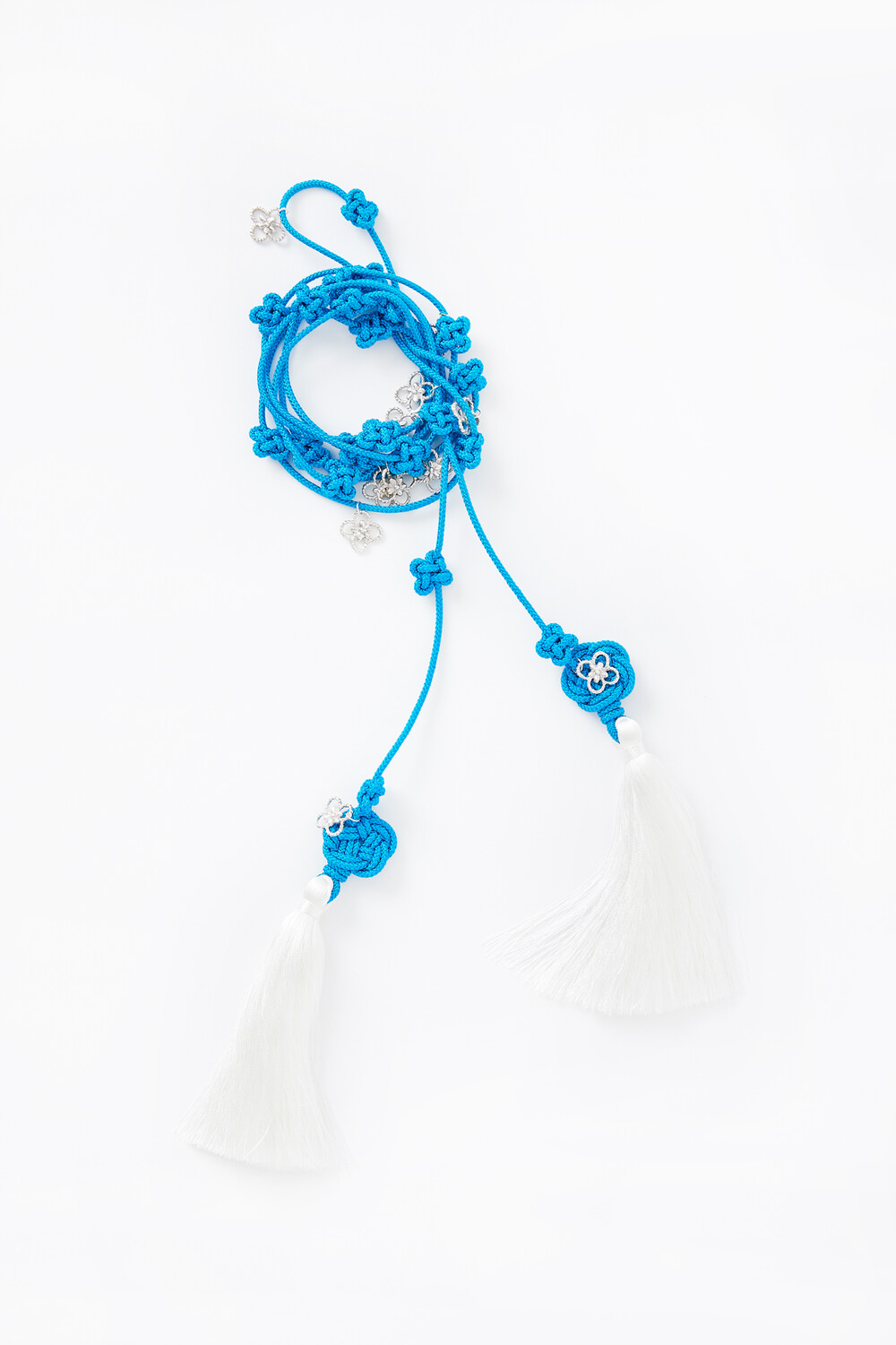 은 꽃이 매듭 사이사이에 들어간 파란 세조대입니다.