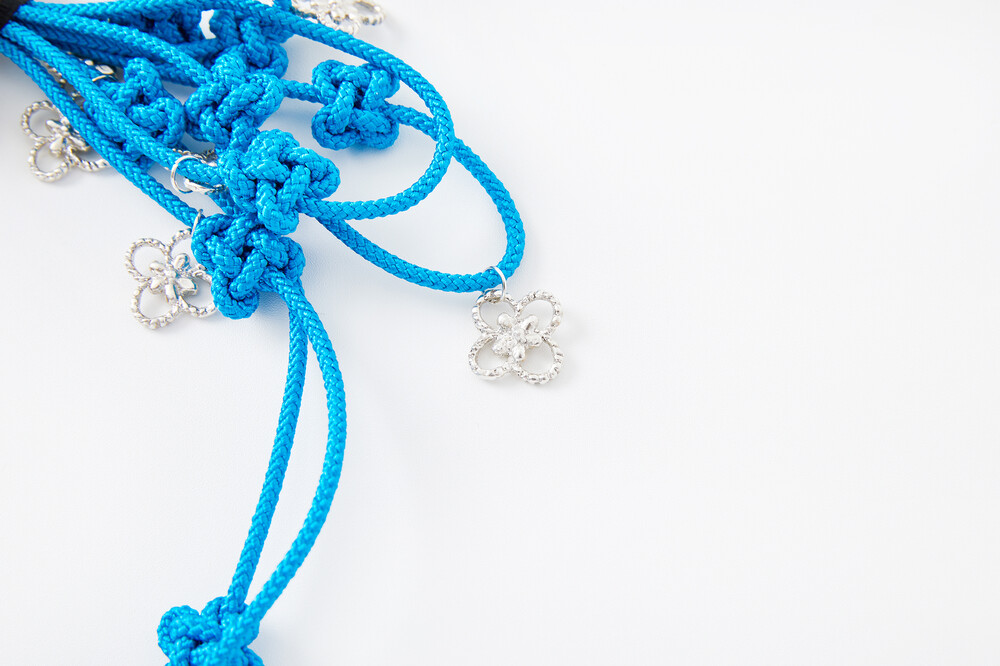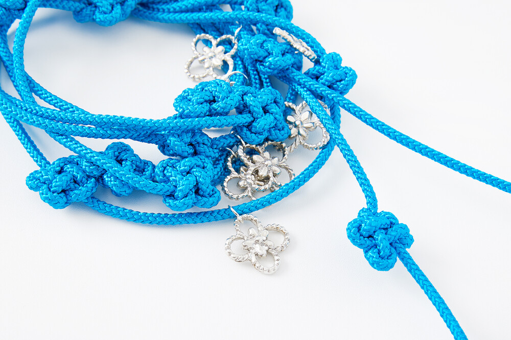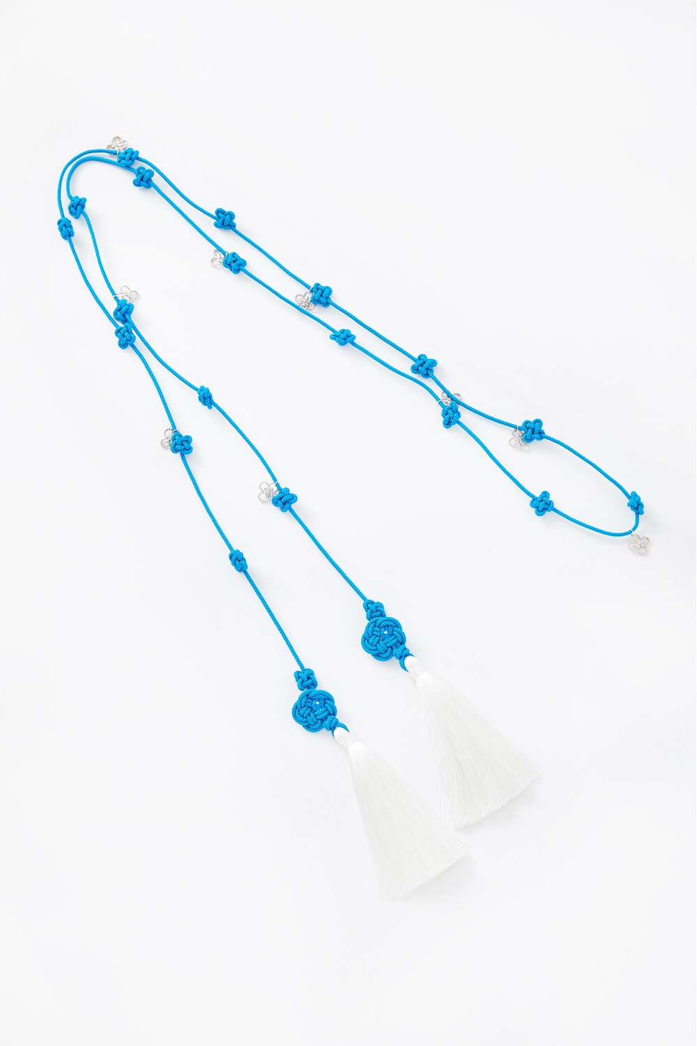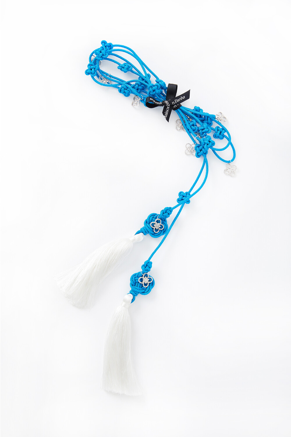 은 꽃이 매듭 사이사이에 들어간 파란 세조대입니다.