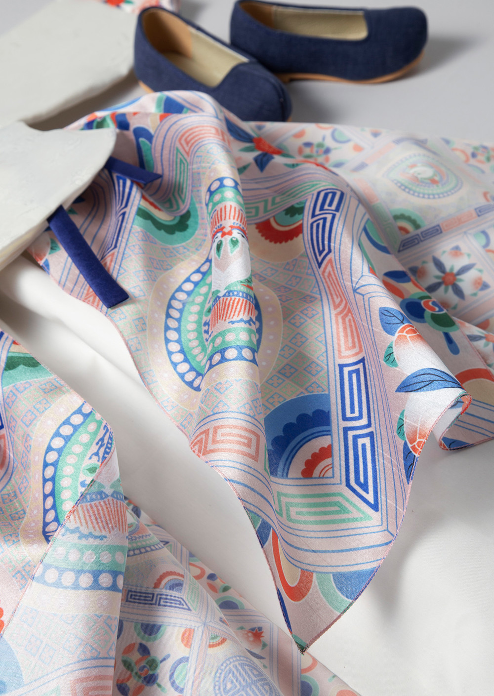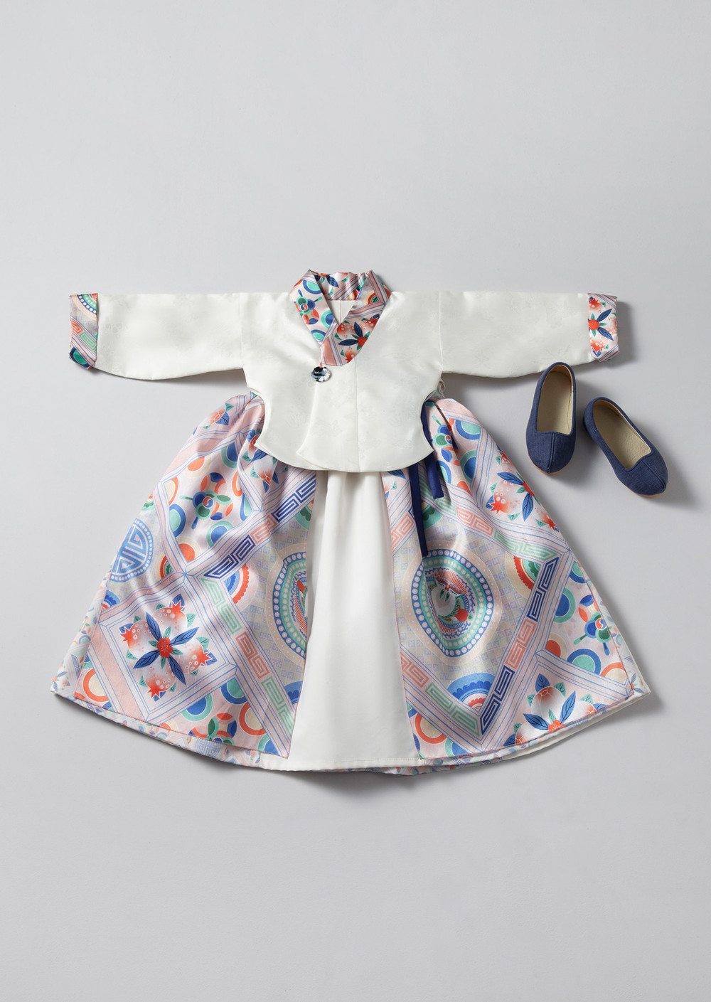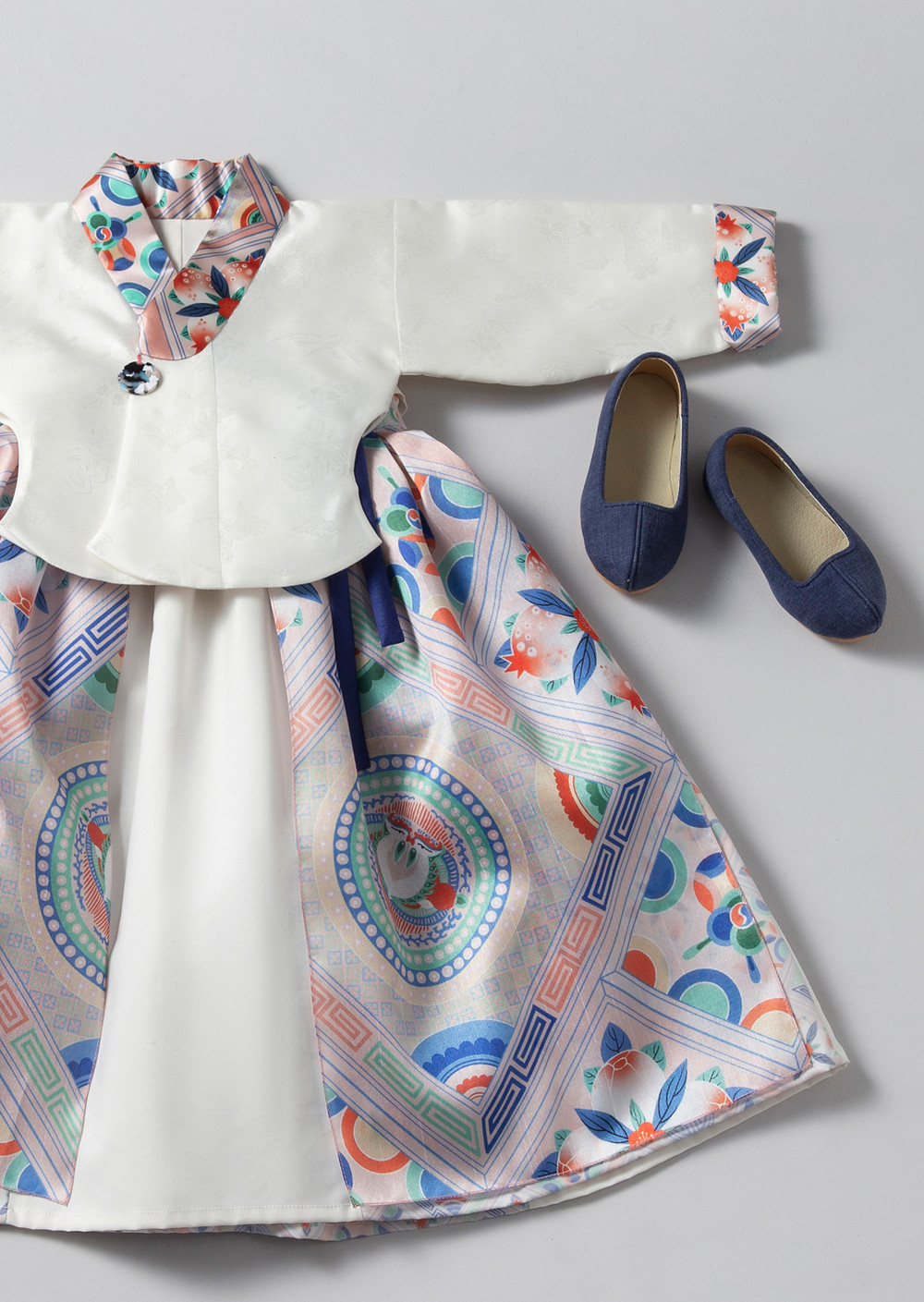 단하의 시그니처 패턴인 봉황문인문보 (과실) 실크로 지은 아기한복입니다.