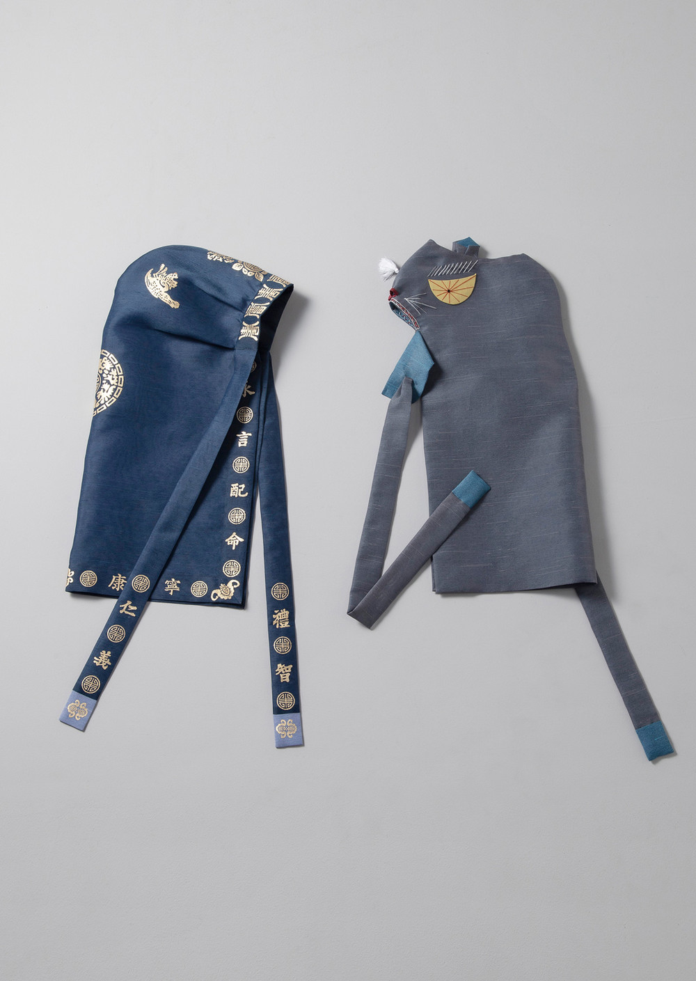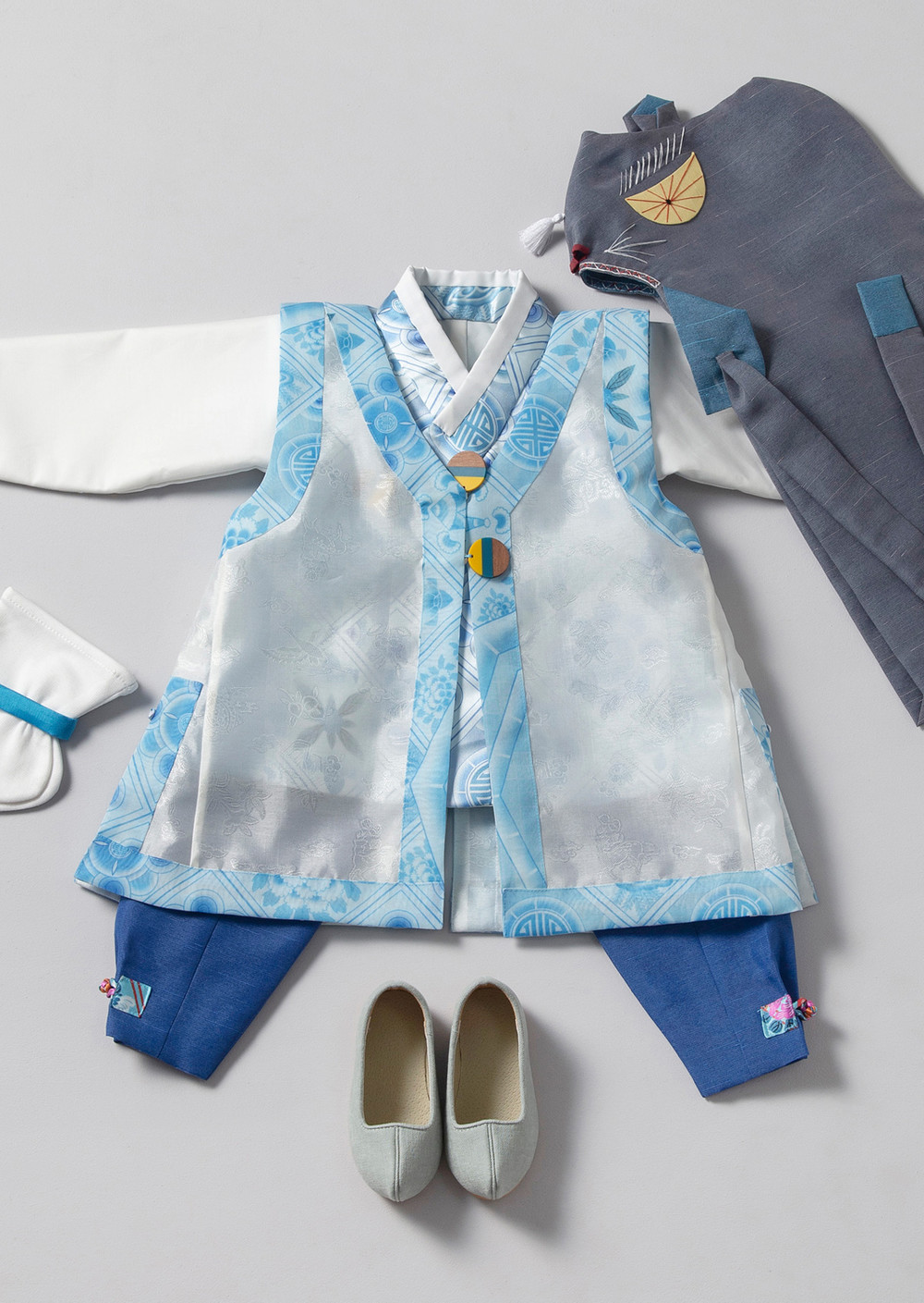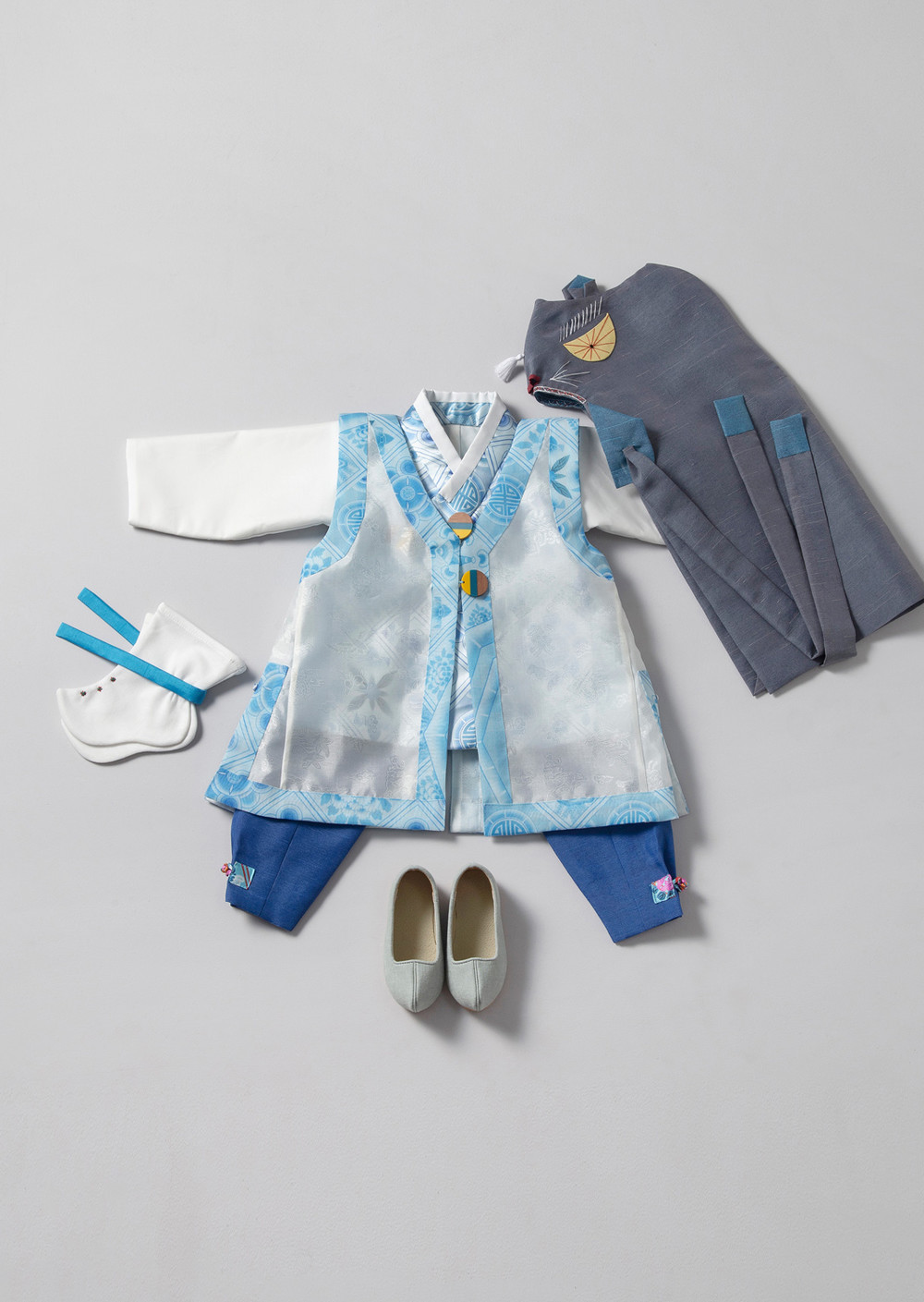 호복과 복건, 파랑색 바지를 함께 매치한 구성입니다.