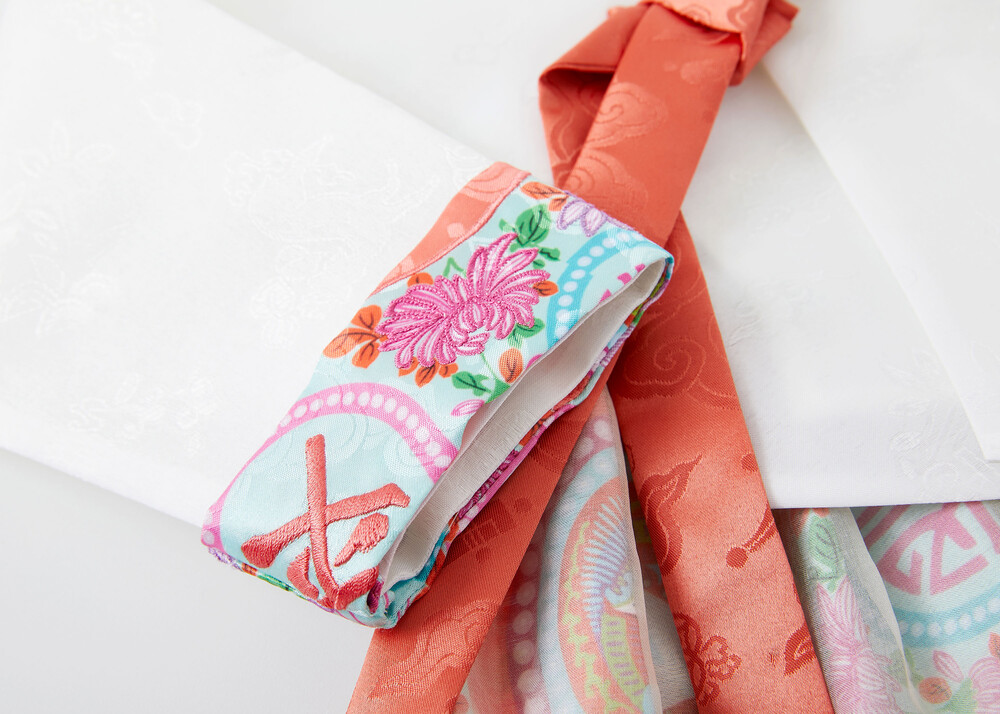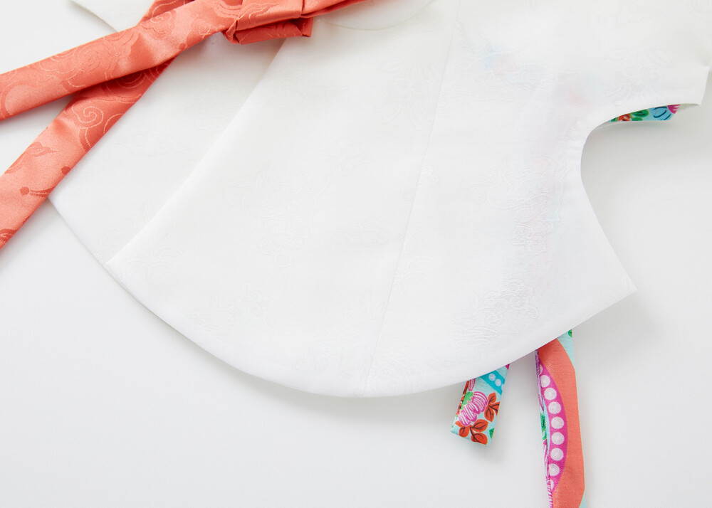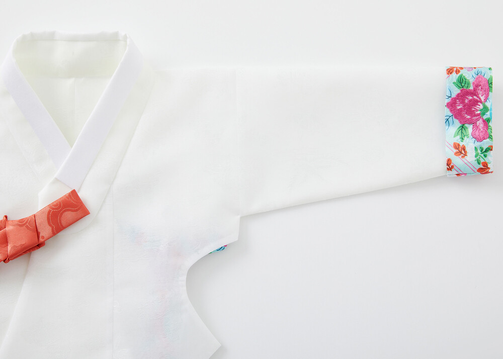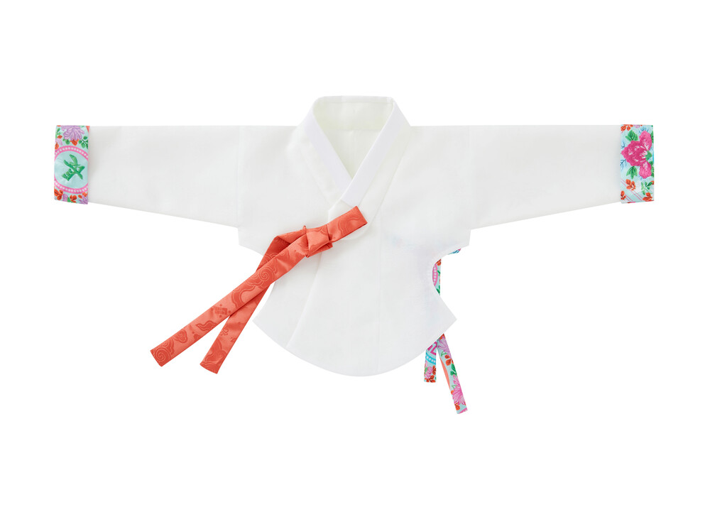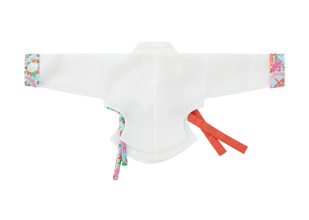 장수와 부귀, 평안을 뜻하는 태평성대로 언제나 건강하고 평안하게 자라길 바라며 제작된 한복입니다.