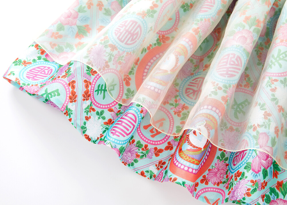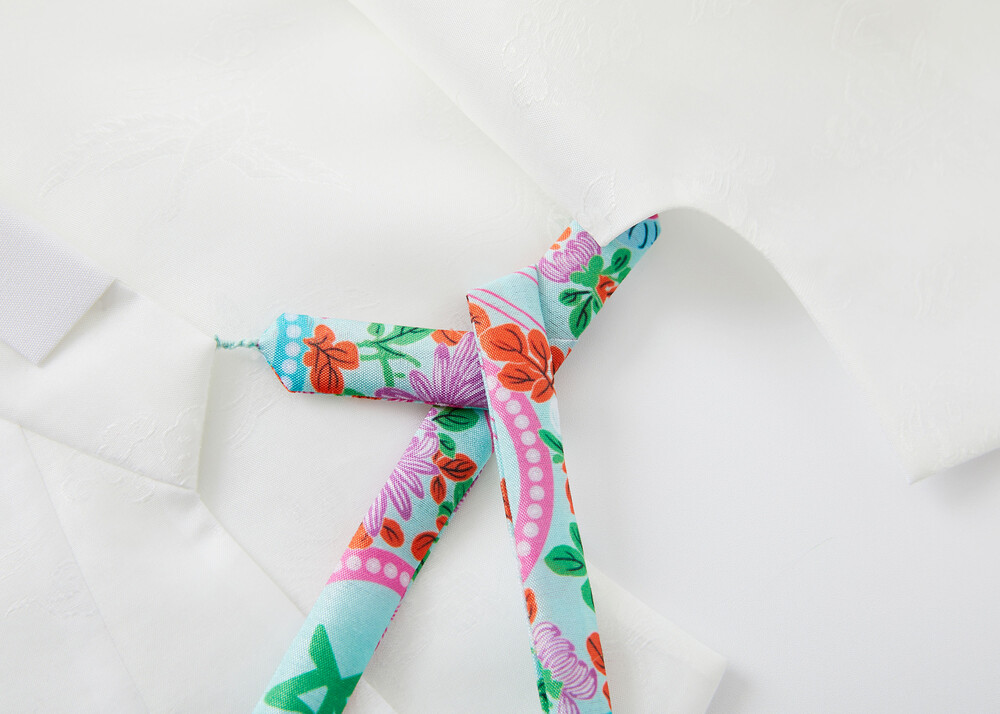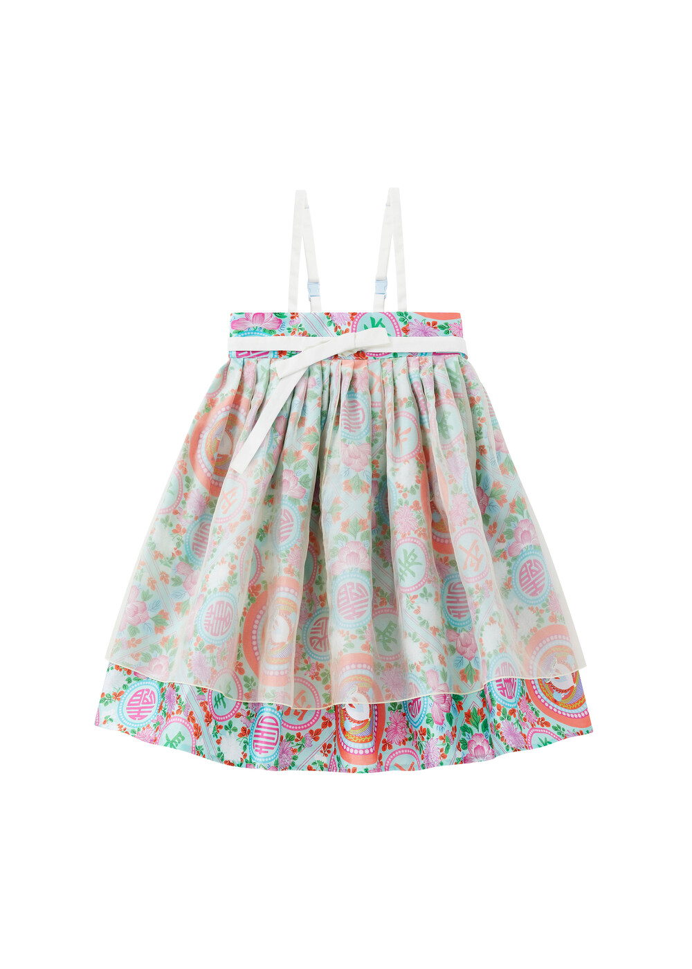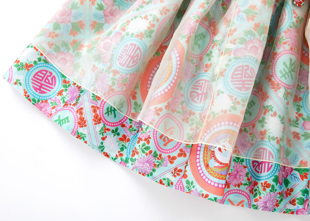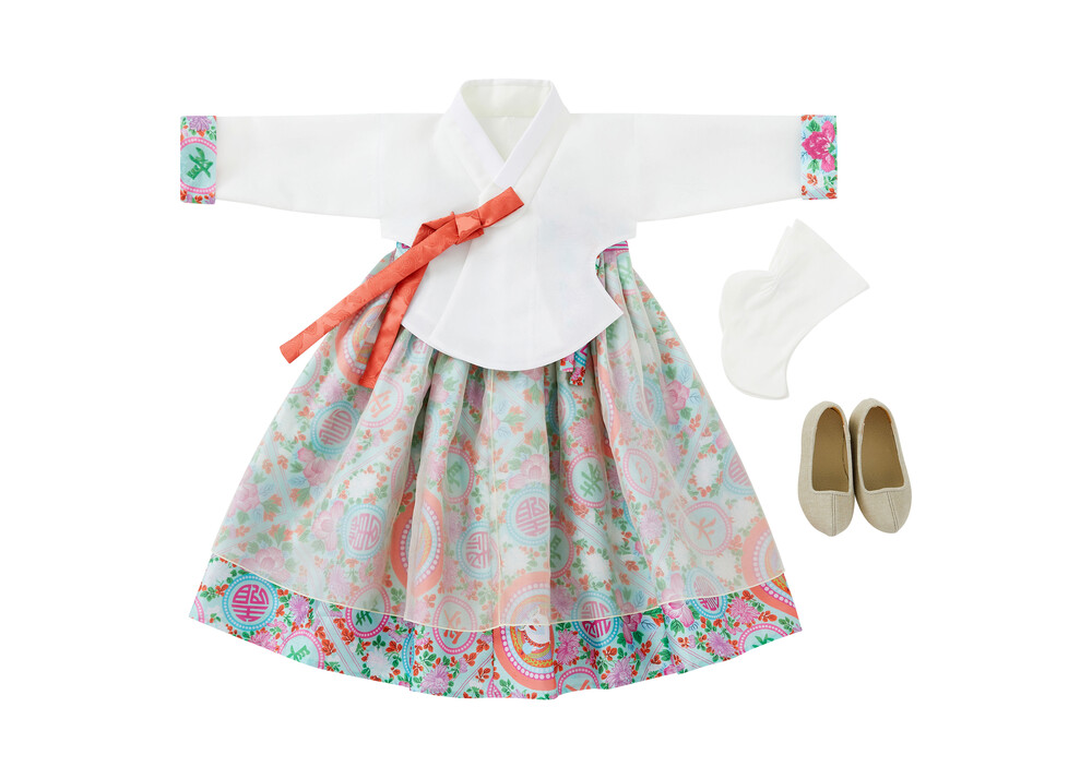 장수와 부귀, 평안을 뜻하는 태평성대로 언제나 건강하고 평안하게 자라길 바라며 제작된 한복입니다.