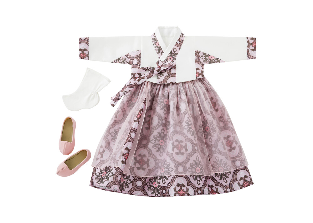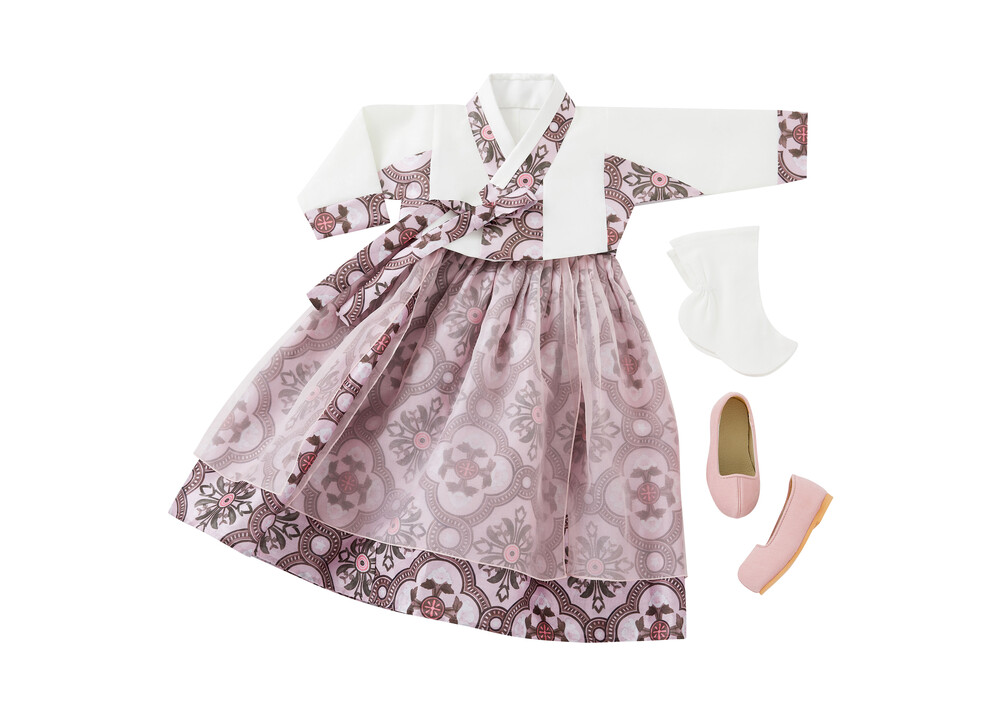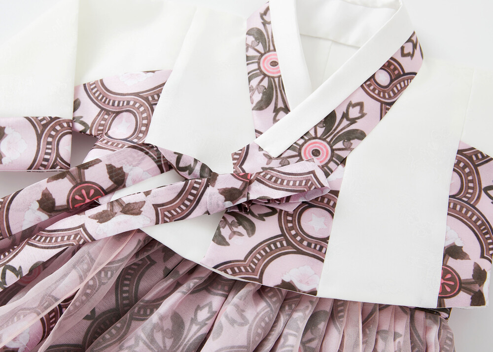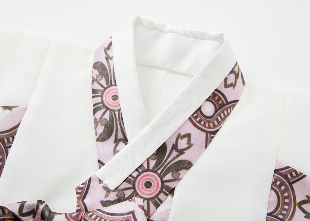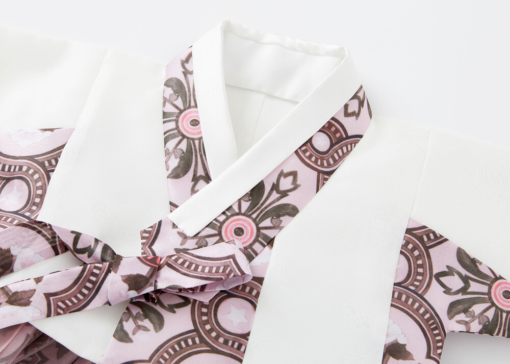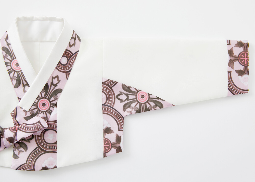장수와 성서로움을 뜻한 국화문으로 언제나 건강하게 자라길 바라며 제작된 한복입니다.