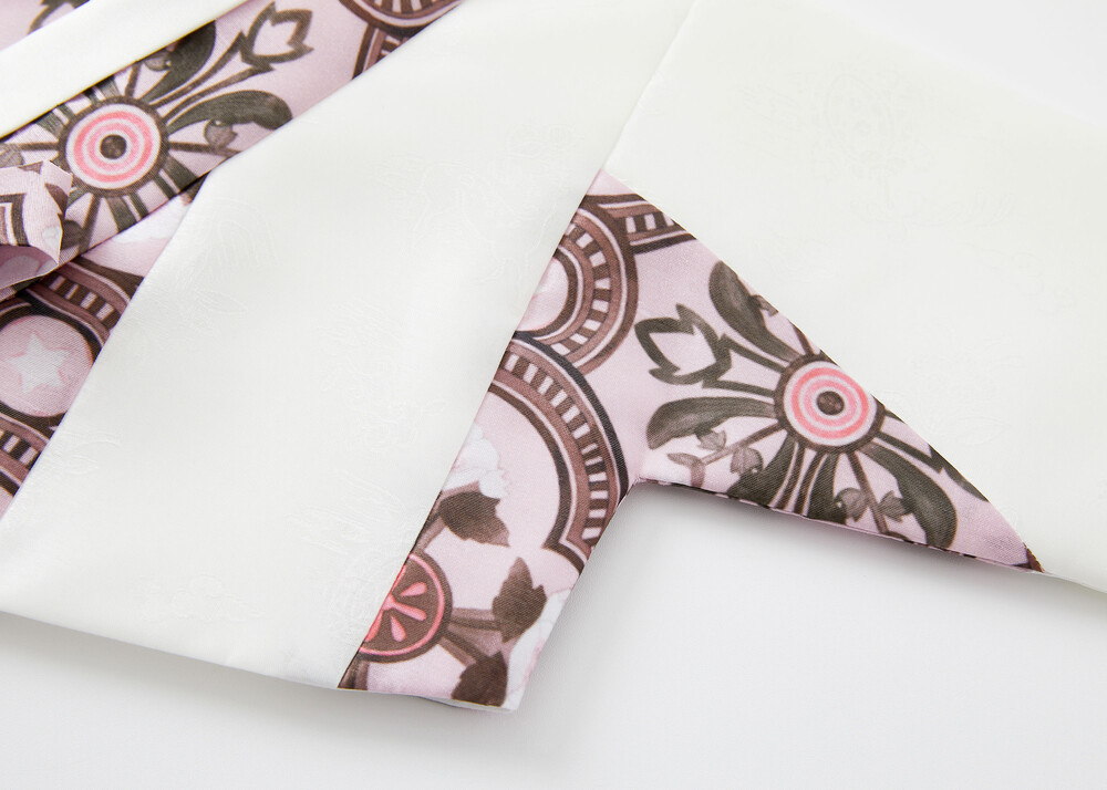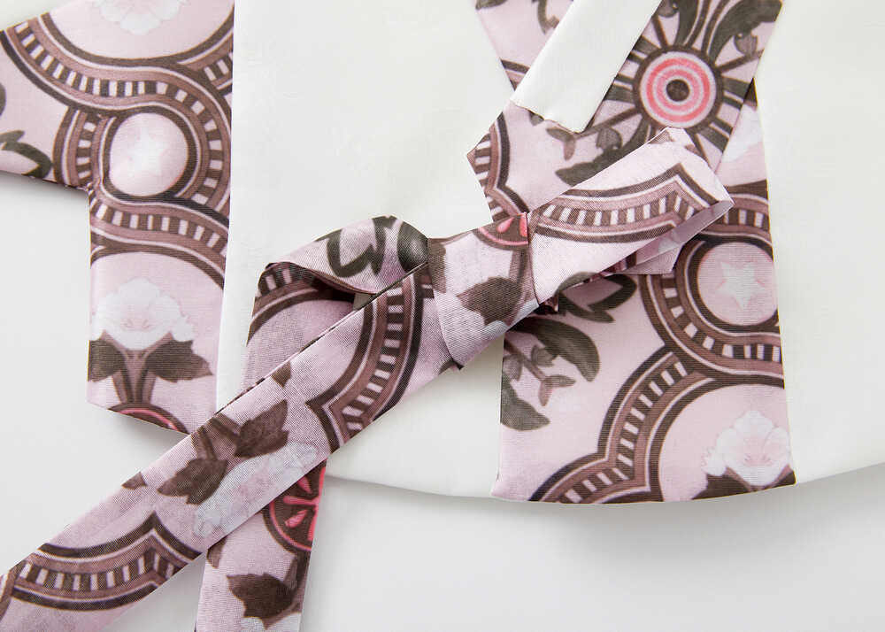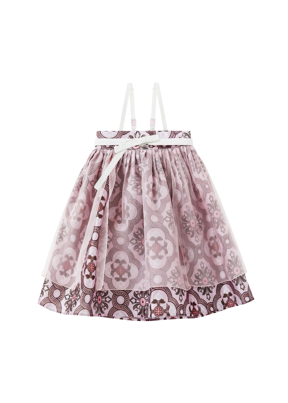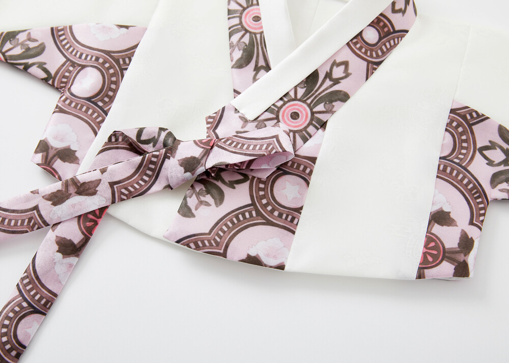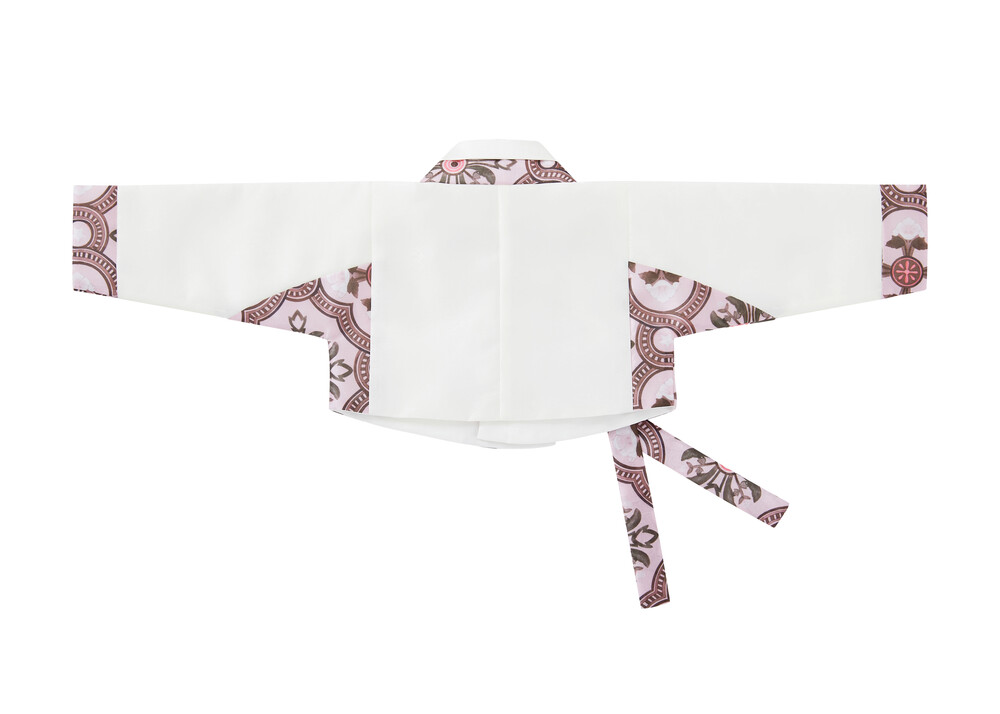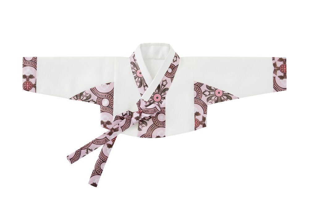 단하의 도배지라인 패턴인 국화문패턴이 전체적으로 들어간 아기한복입니다.