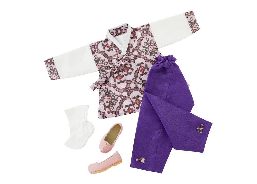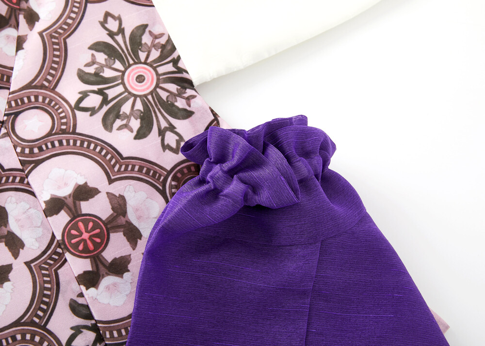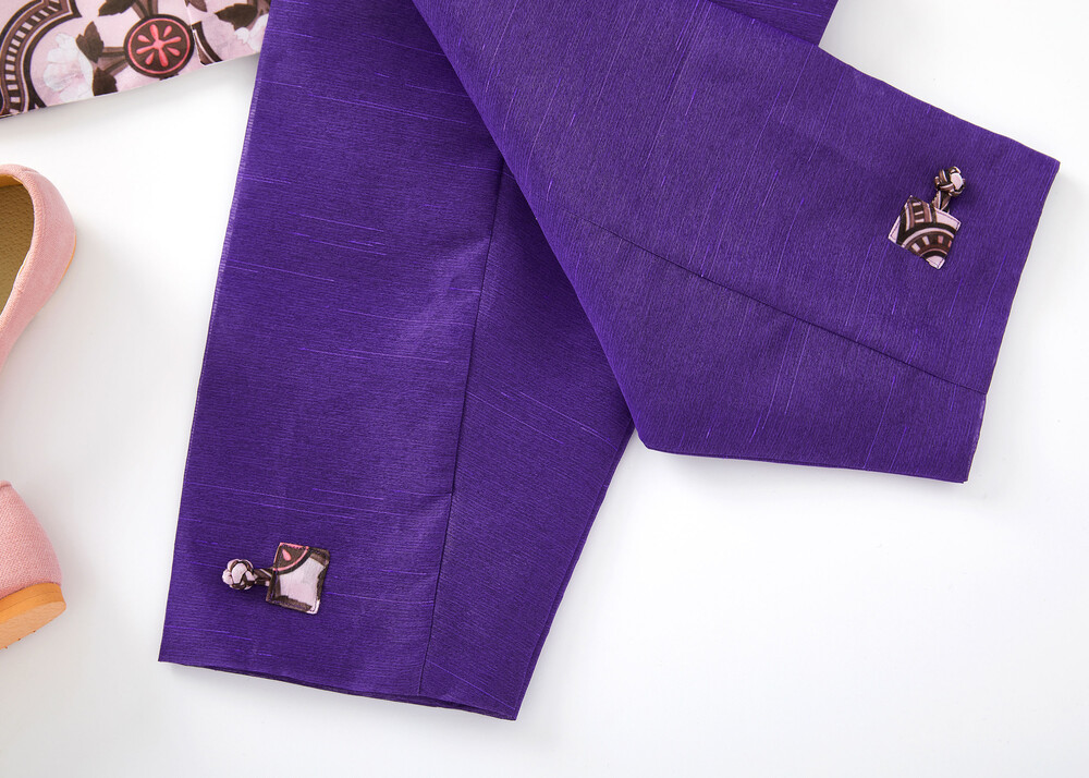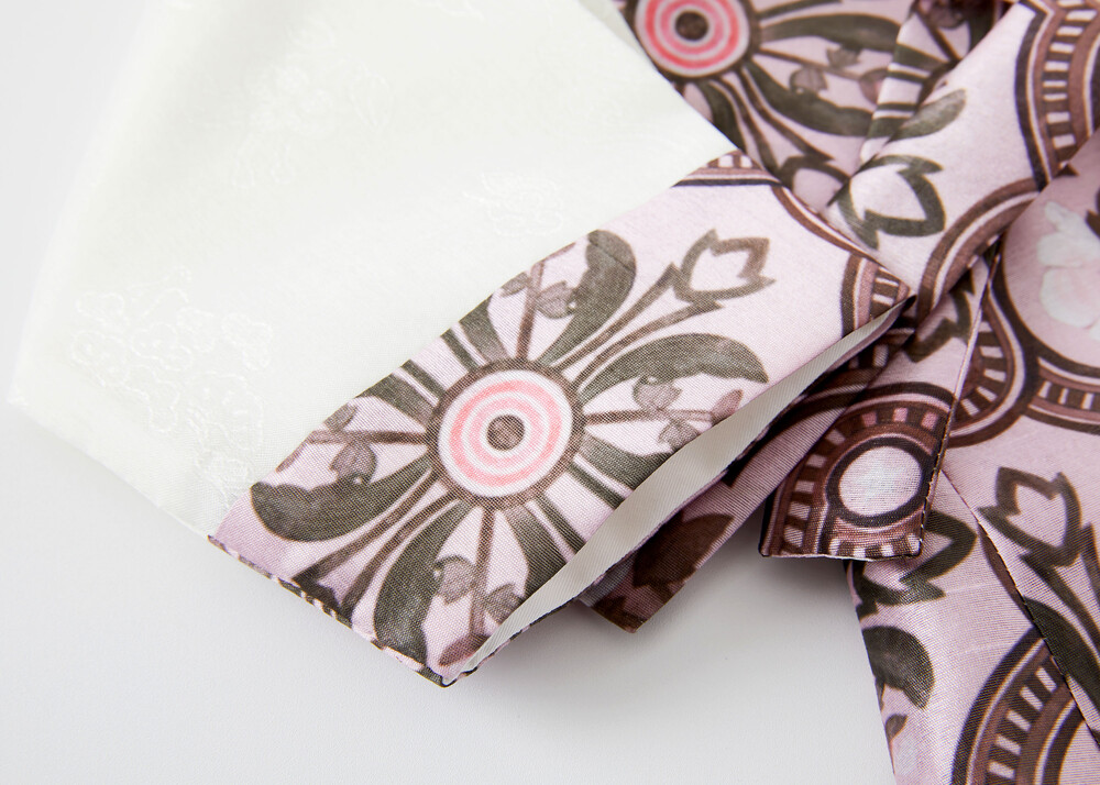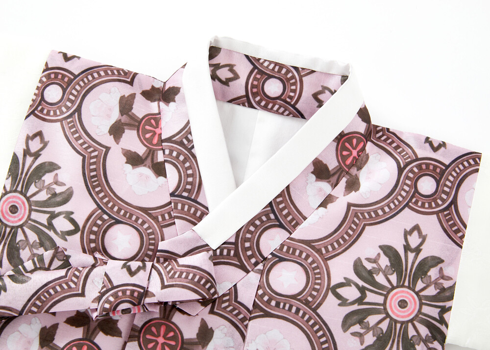 장수와 성서로움을 뜻한 국화문으로 언제나 건강하게 자라길 바라며 제작된 한복입니다.
