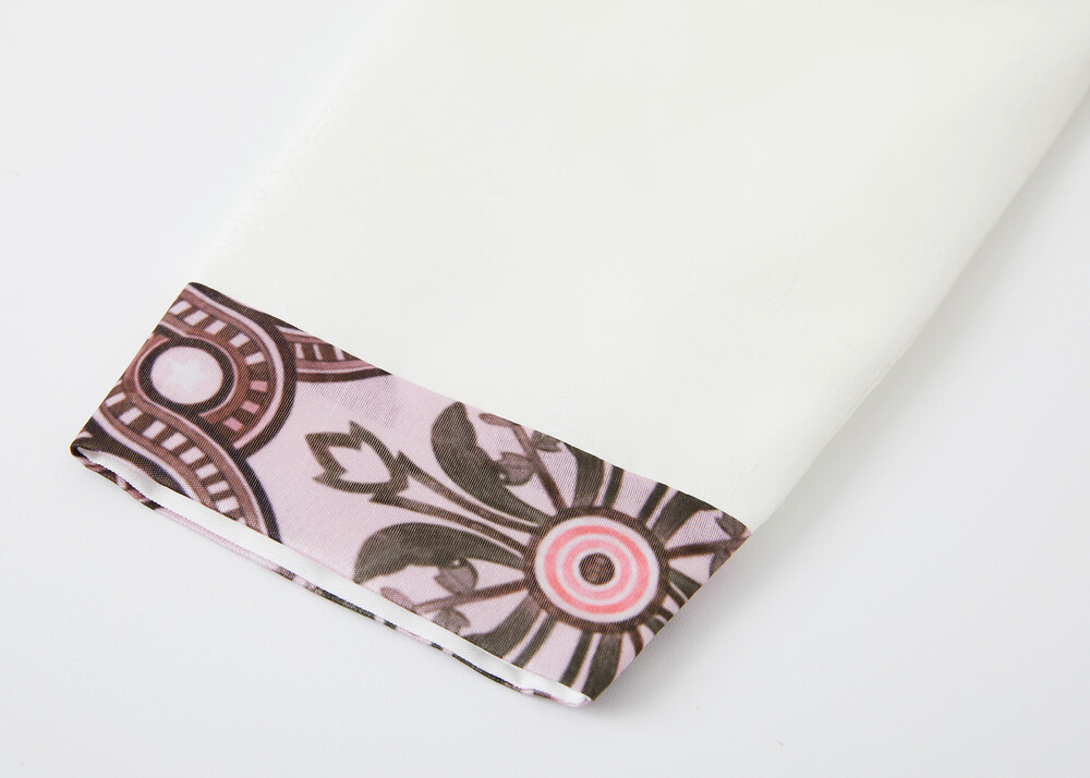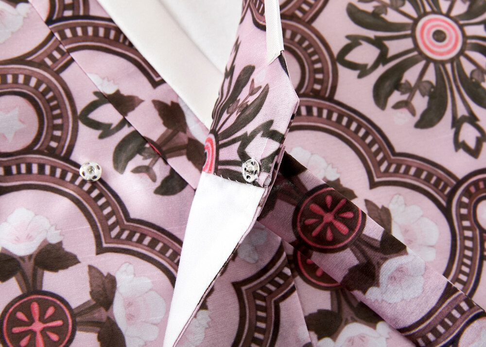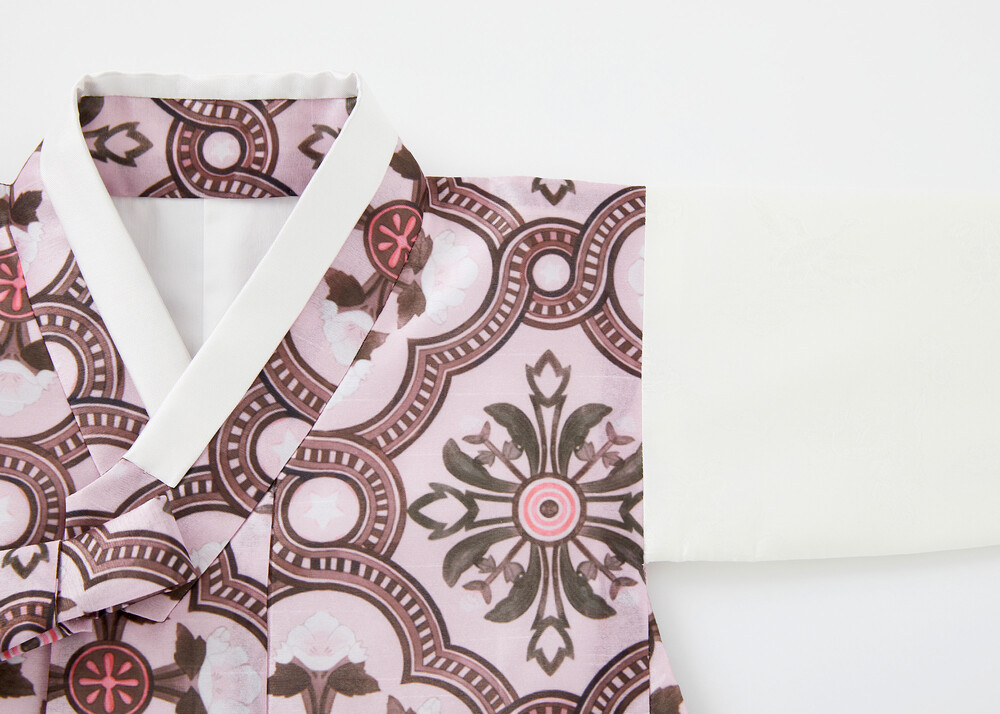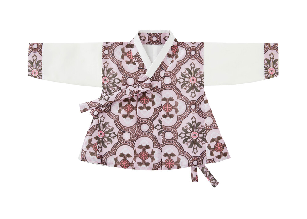 단하의 도배지라인 패턴인 국화문패턴이 저고리에 전체적으로 들어간 아기한복입니다.