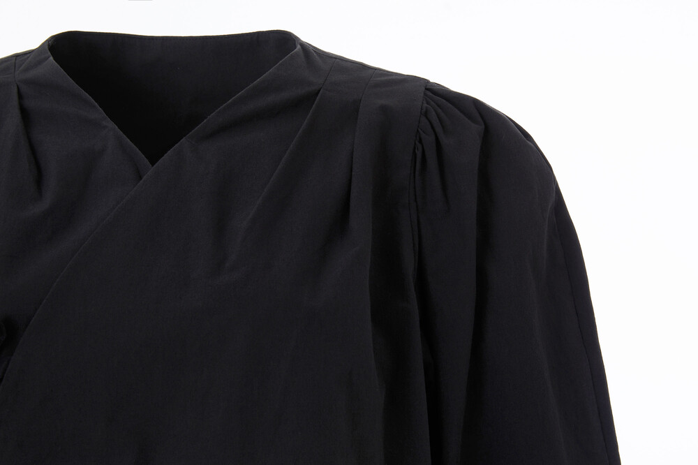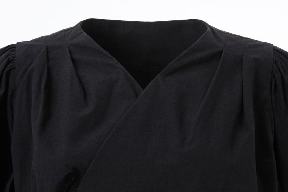 오가닉 코튼으로 디자인된 랩 형식의 블라우스입니다.