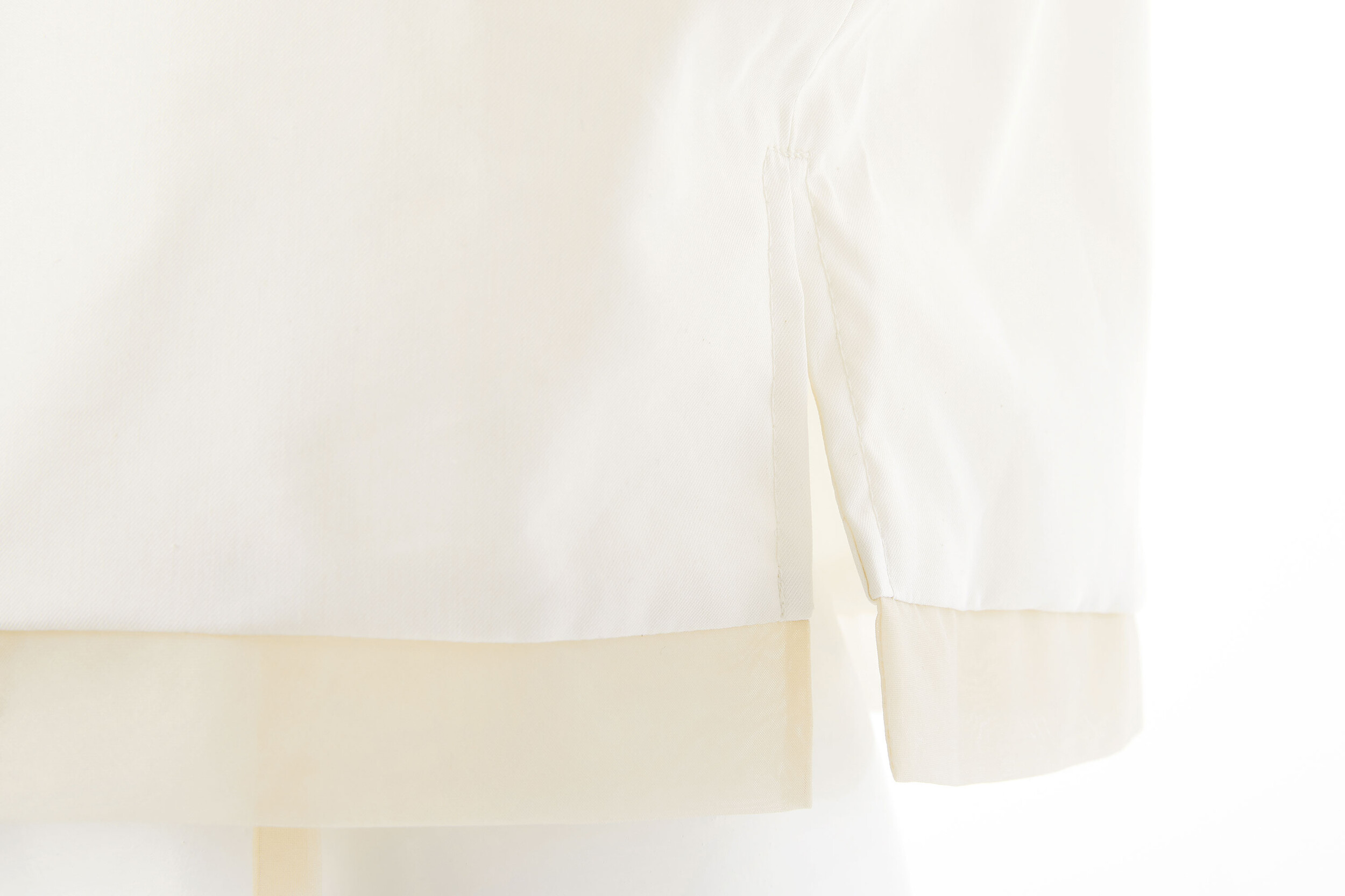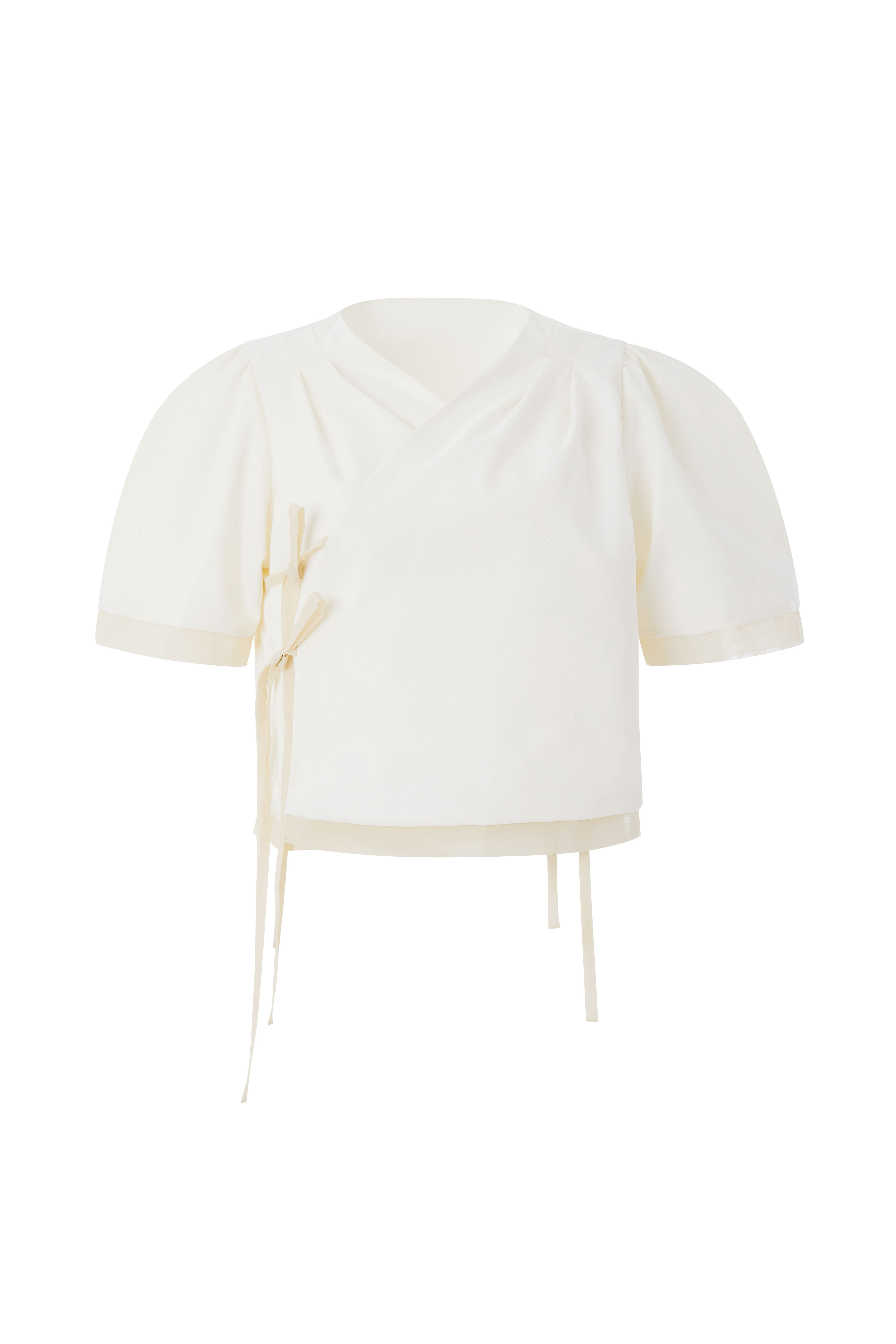 오가닉 + 리사이클 코튼으로 디자인된 랩 형식의 블라우스입니다.
