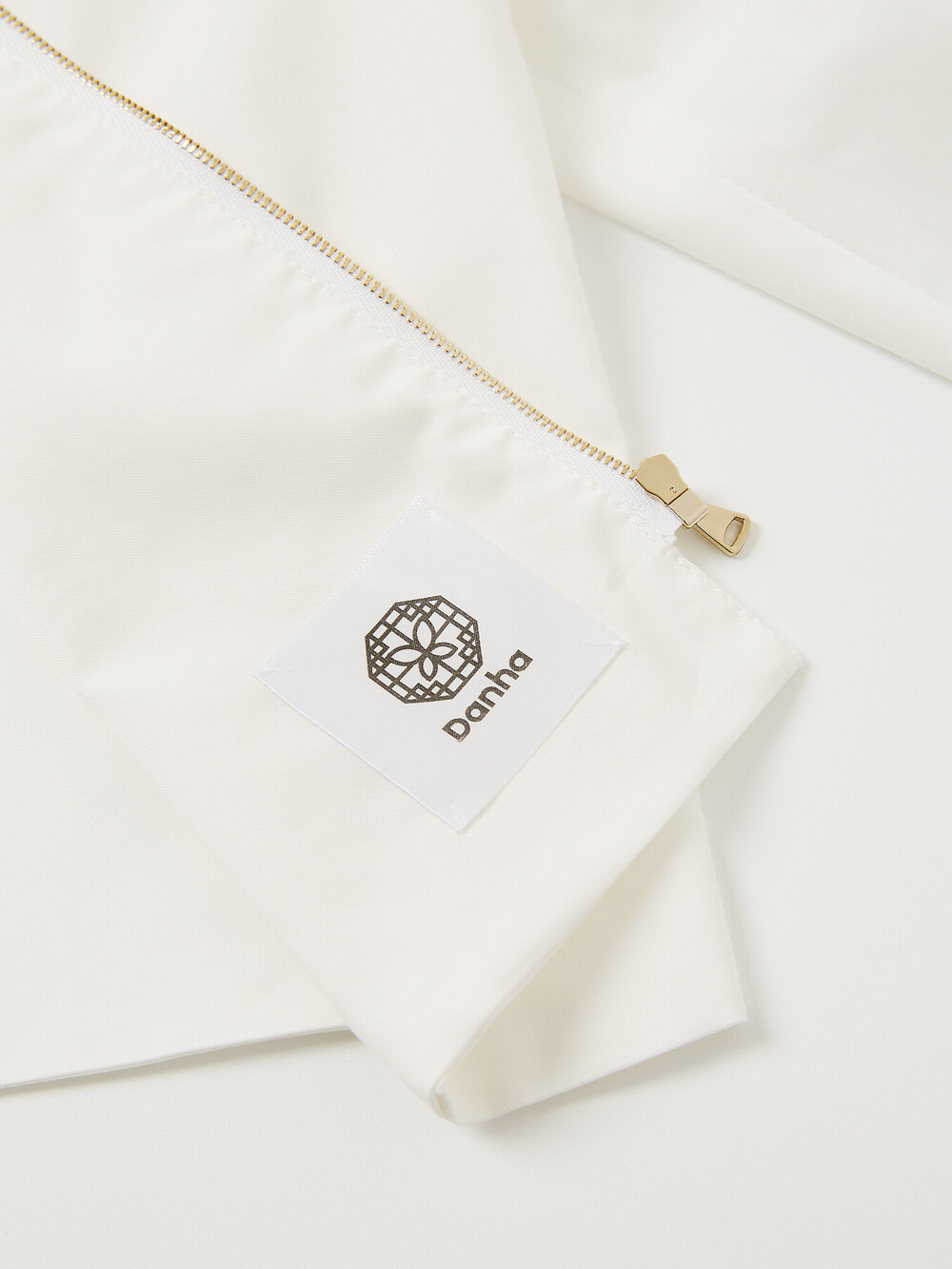 지속가능성을 추구하는 단하의 브랜드 철학에 맞추어 3년 동안 비료를 쓰지 않고 키운 오가닉 코튼과 폐 페트병 추출 리사이클 원사를 혼용하여 제직한 GOTS 인증 원단으로 제작되었습니다.