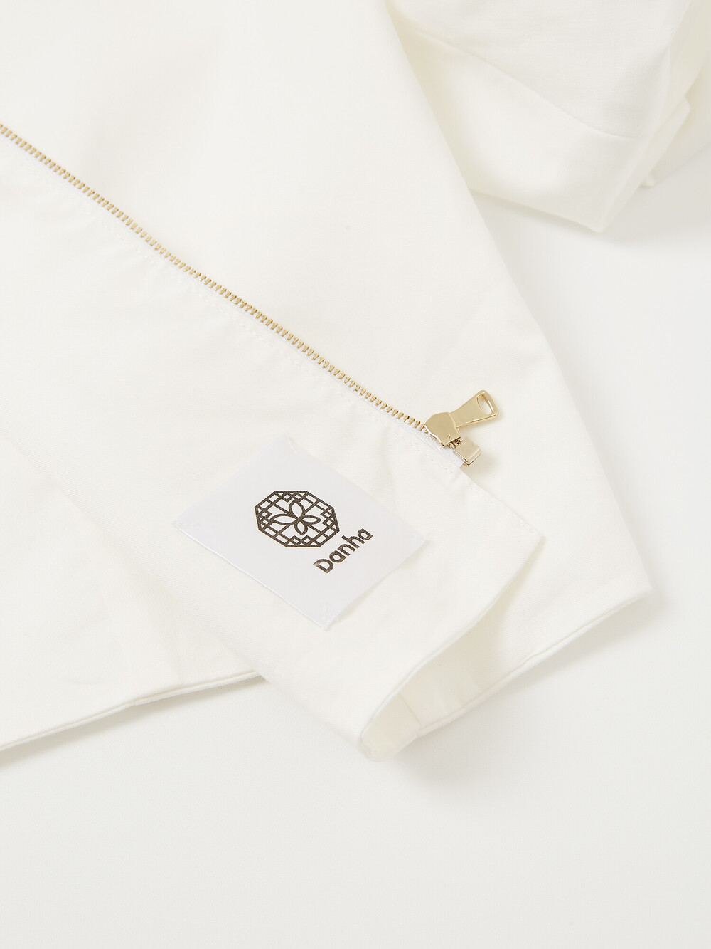 지속가능성을 추구하는 단하의 브랜드 철학에 맞추어 3년 동안 비료를 쓰지 않고 키운 오가닉 코튼과 폐 페트병 추출 리사이클 원사를 혼용하여 제직한 GOTS 인증 원단으로 제작되었습니다.