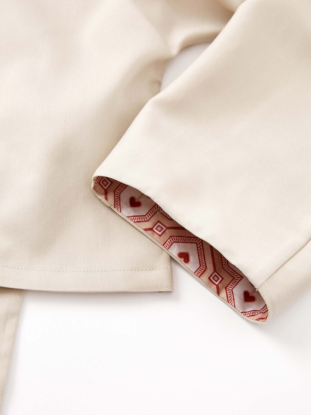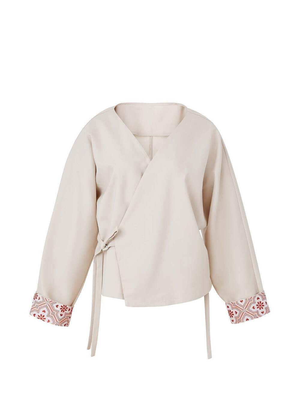 전체적인 샌드컬러와 소매의 포인트 문양이 조화로운 셔츠입니다.