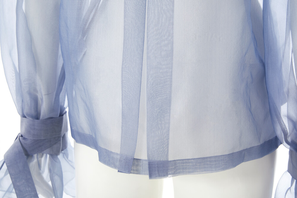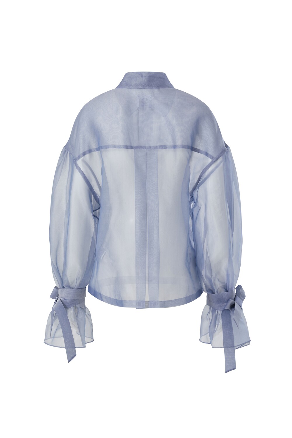 청보라 실크 리본 블라우스는 신비로운 청보라 컬러에 블루의 깊이감이 더해져 고급스럽고 매혹적인 분위기를 자아내며, 은은한 실크의 자연스러운 광택이 독특한 컬러의 아름다움을 더욱 돋보이게 합니다.