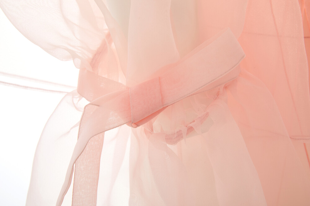 앞부분의 사랑스러운 리본 디테일이 소녀스러운 분위기를 강조하며, 부드러운 베이비 핑크 컬러가 여성스러운 감성을 더해줍니다.