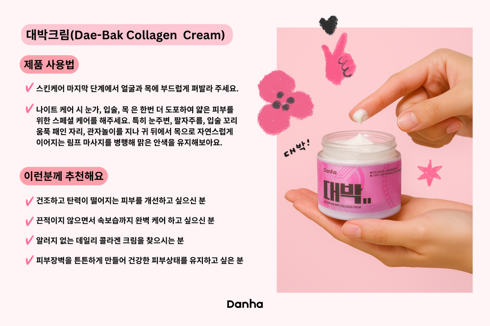 ‘대박크림’은 끈적임 없이 빠르게 흡수되는 고밀도 콜라겐 보습 크림으로,