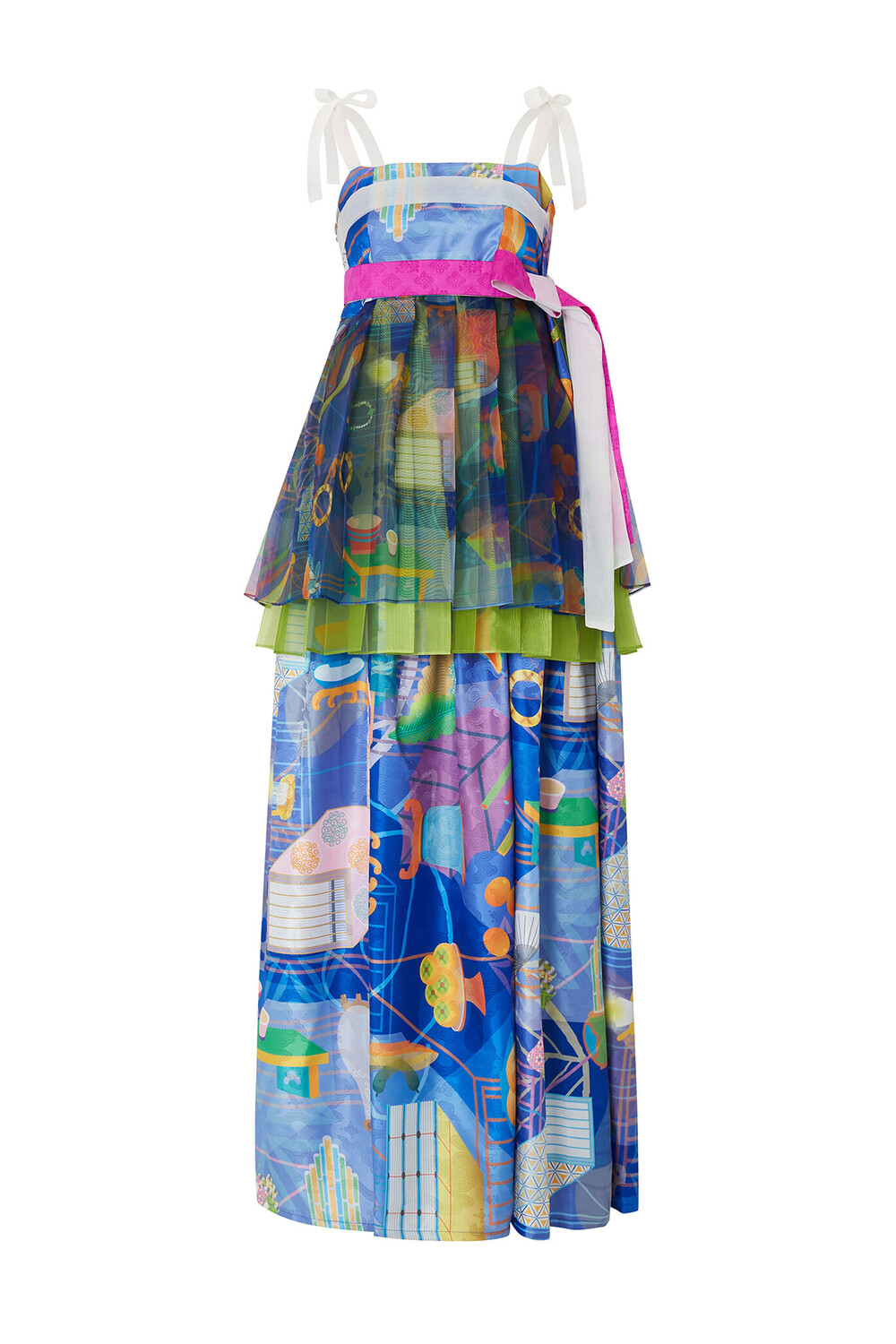 책가도 캉캉 드레스는 화려한 색감을 통해 가수 청하의 발랄함을 표현한 제품입니다.