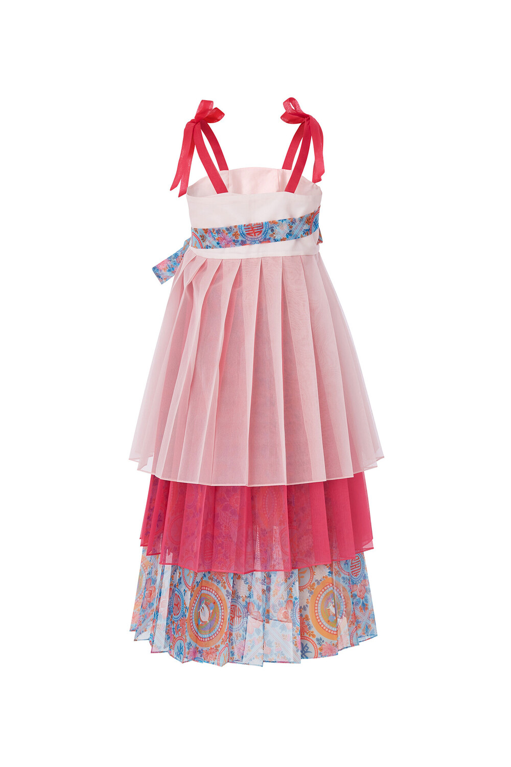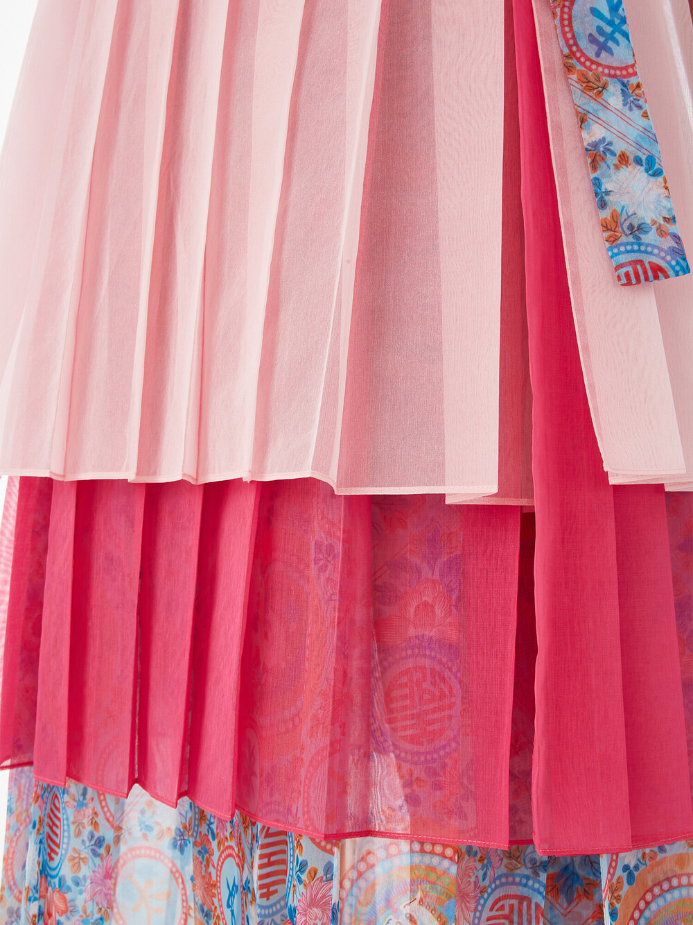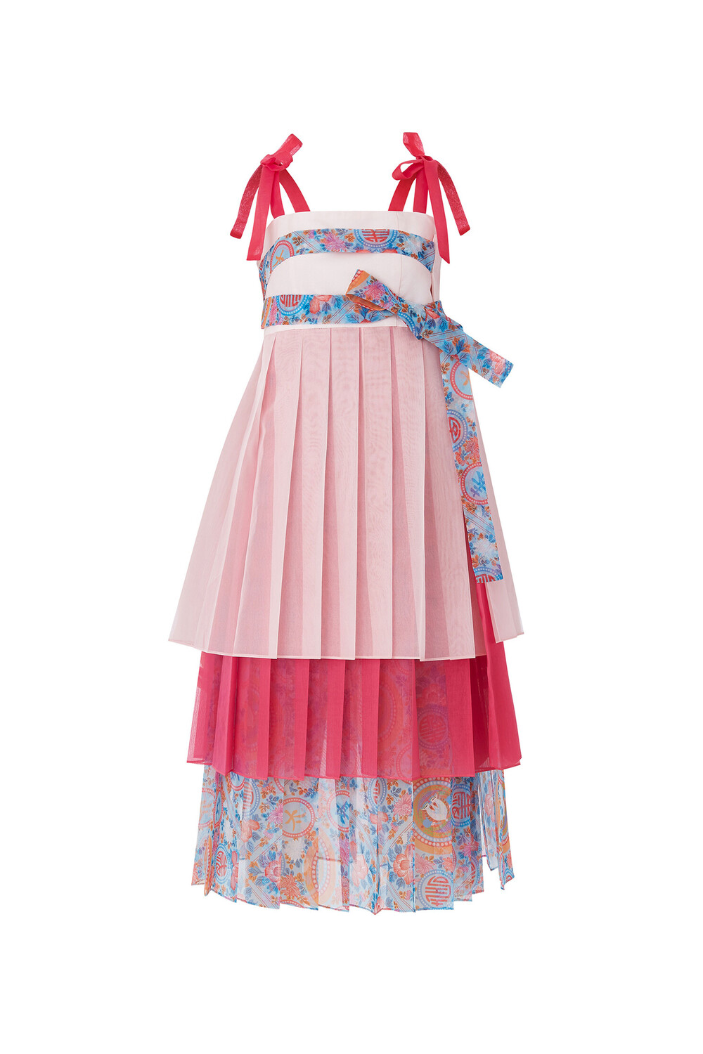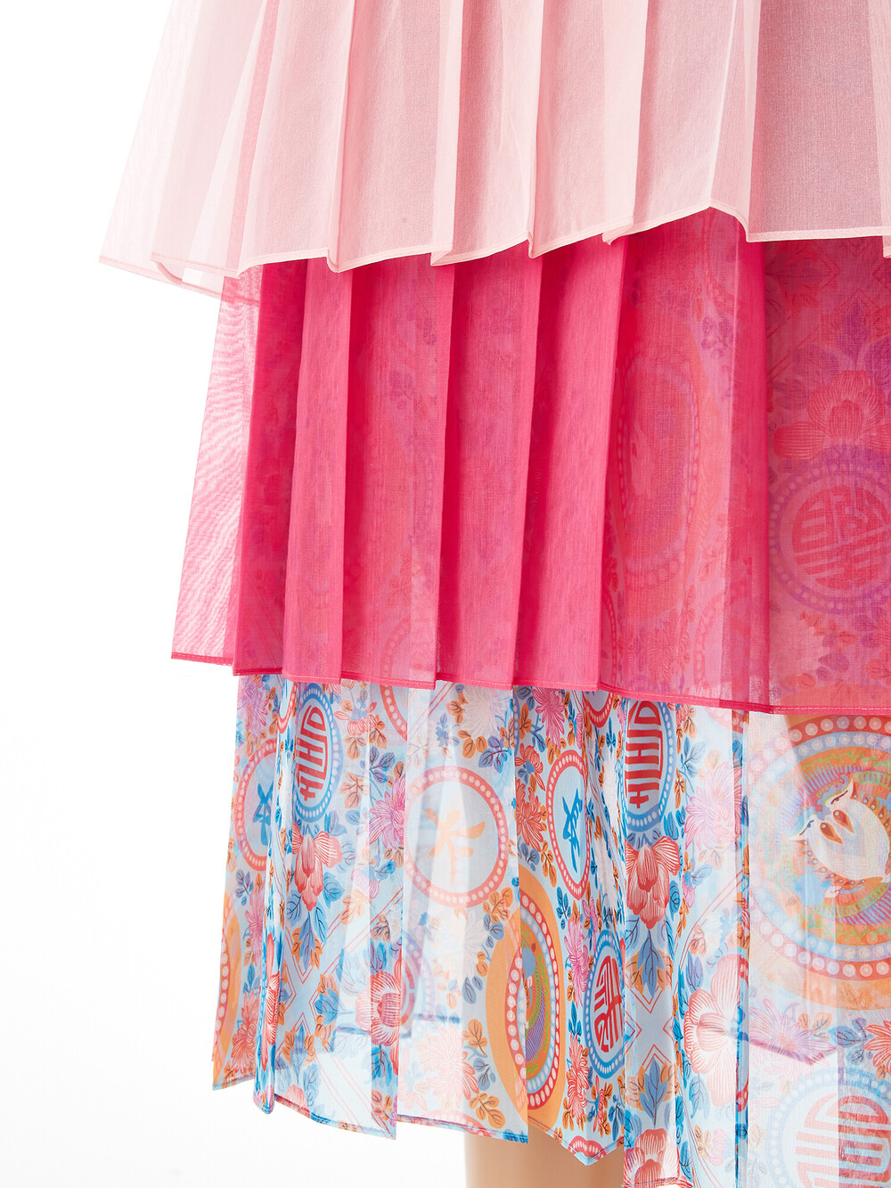 3단 플리츠 원피스는 각기 다른 패턴과 컬러의 플리츠로 이루어진 둘러입는 원피스입니다.