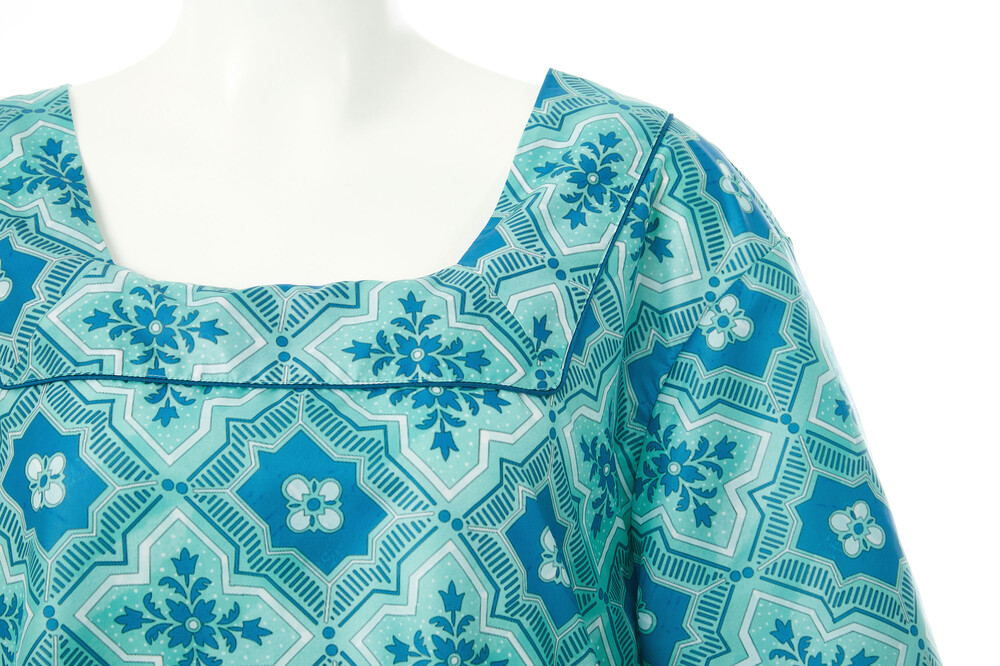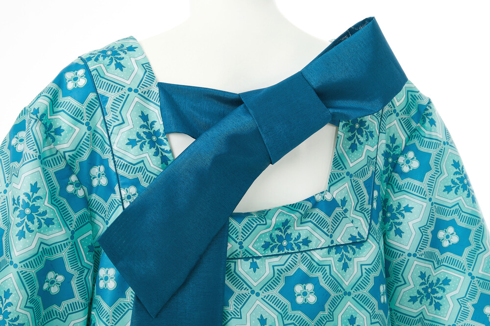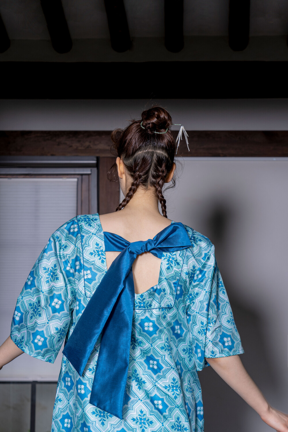 커다란 리본을 원하는 모양으로 묶어 등이 포인트가 됩니다. 등 파짐이 속옷 위로 올라오게 (*체형에 따라 다를 수 있음) 디자인되어 편하게 착용할 수 있고, 양쪽 히든 주머니로 실용성까지 더했습니다. 겉감은 Recycle Taffeta, 안감은 LOHAS 인증을 받은 풍기인견 협동조합이 생산한 '풍기인견'으로 만들어져 통기성이 좋아 땀이 흡수되어도 금방 말라 촉감이 시원하고 몸에 달라붙지 않고, 피부에도 좋은 원단입니다.