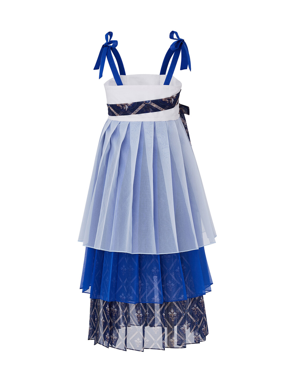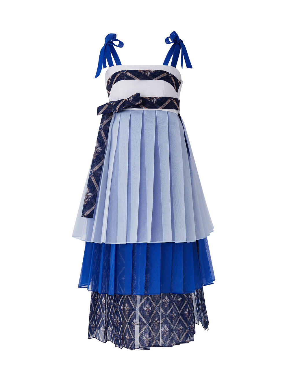 당초문 3단 플리츠 원피스는 조선 궁중의 도배지 문양 중 하나인 당초문 패턴이 들어간 원피스입니다.