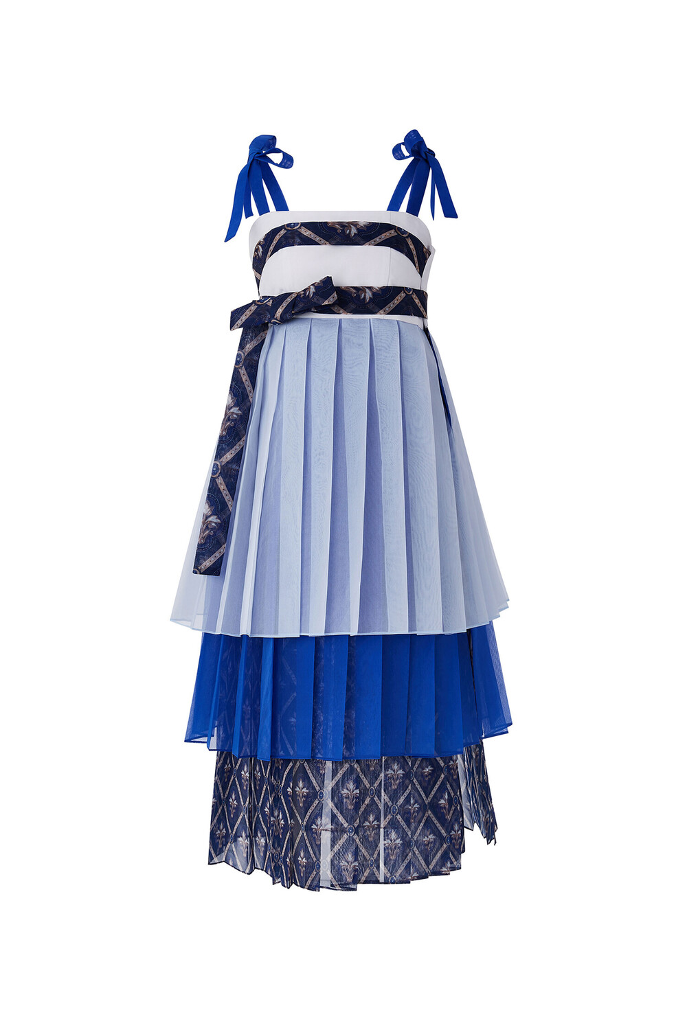 당초문 3단 플리츠 원피스는 조선 궁중의 도배지 문양중 하나인 당초문 패턴이 들어간 원피스입니다.