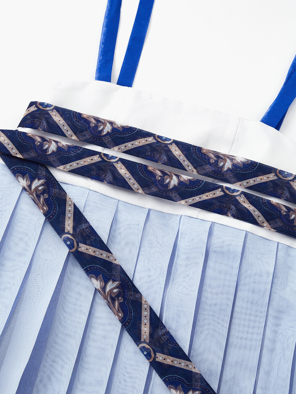 각기 다른 패턴과 컬러의 플리츠로 이루어진 둘러입는 원피스입니다.