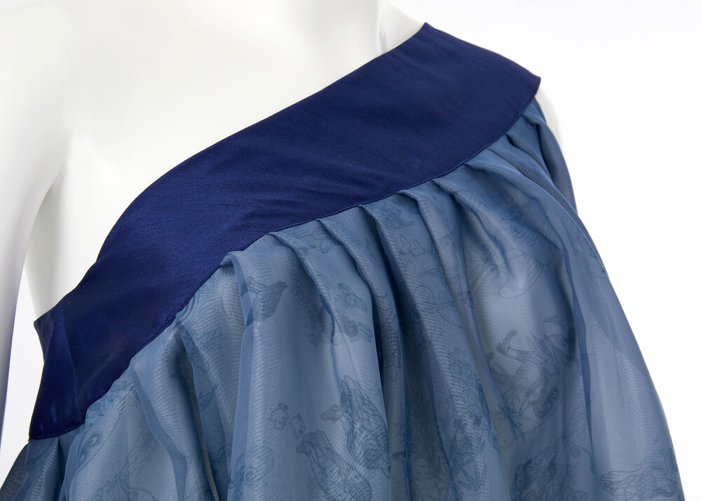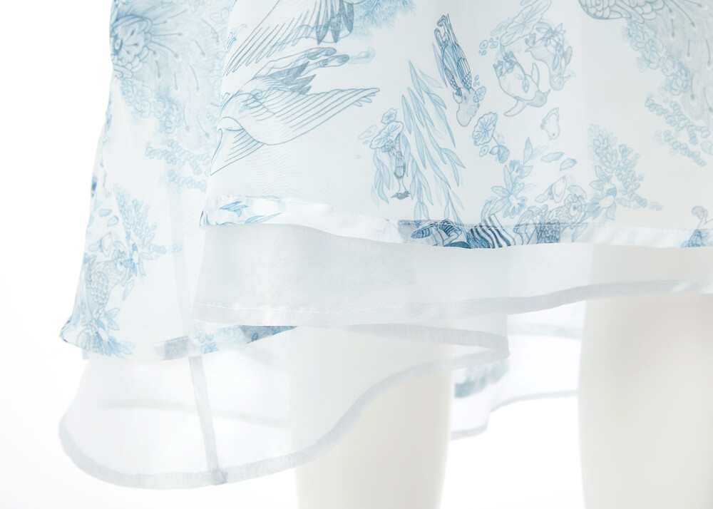 이 전경 작가님의 화조도 패턴을 사용한 그라데이션 쉬폰 원피스입니다.