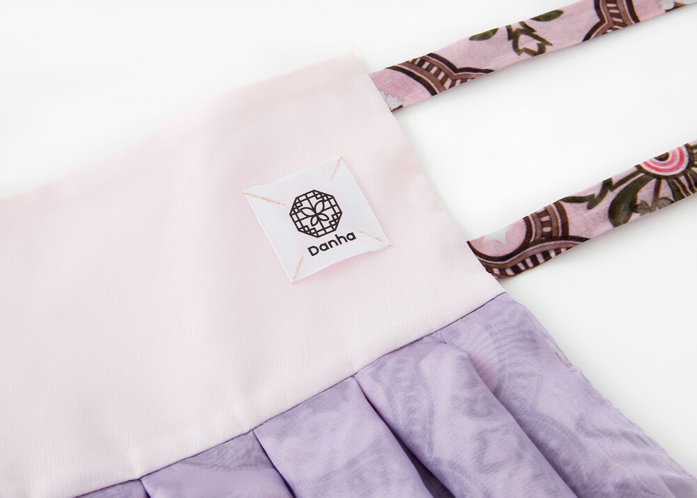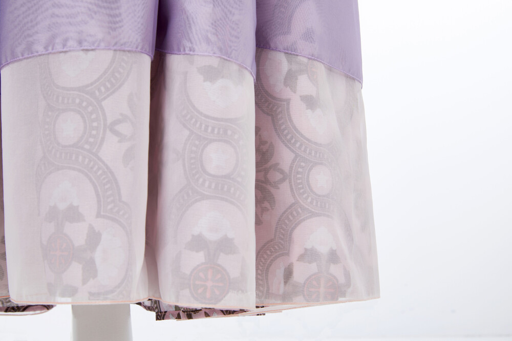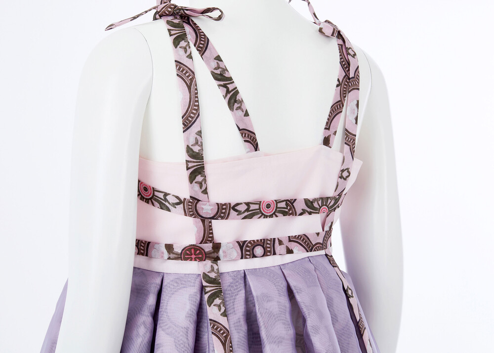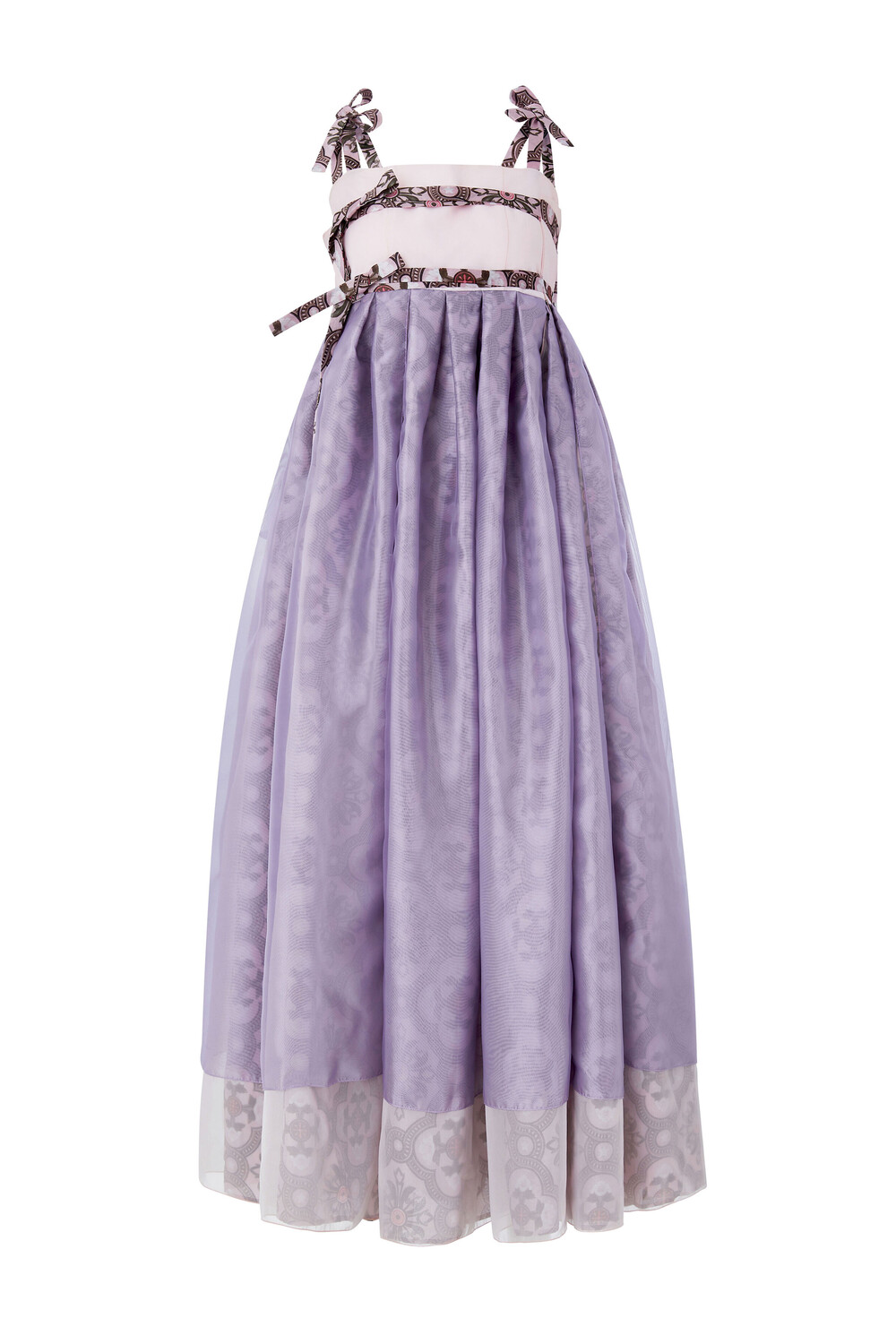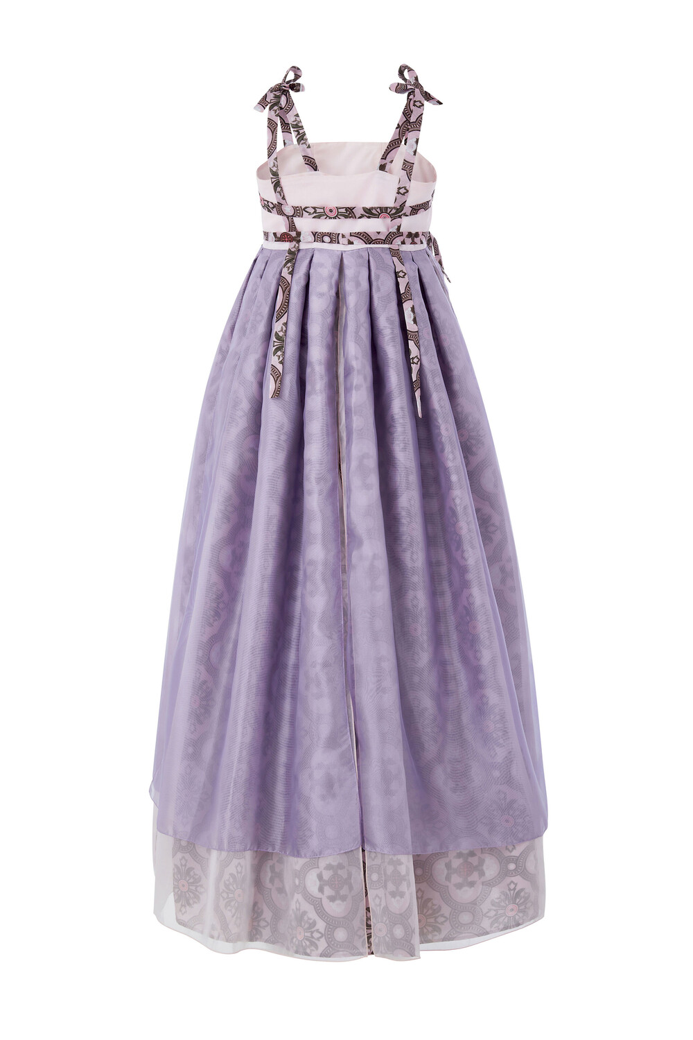 연보라 국화드레스는 조선의 궁중도배지 문양 중 하나인 국화문 패턴이 들어간 연보라 드레스 입니다.