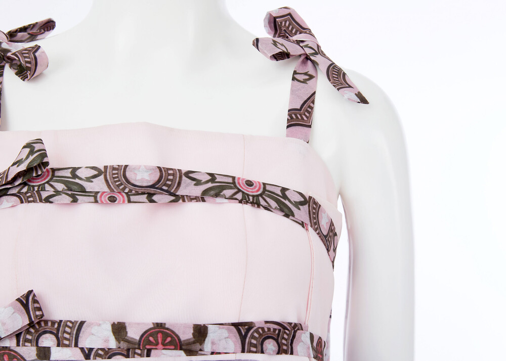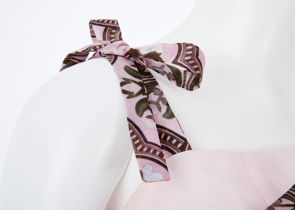 가슴 말기와 어깨끈이 국화문 패턴으로 제작되어 고급스러운 포인트가 됩니다.