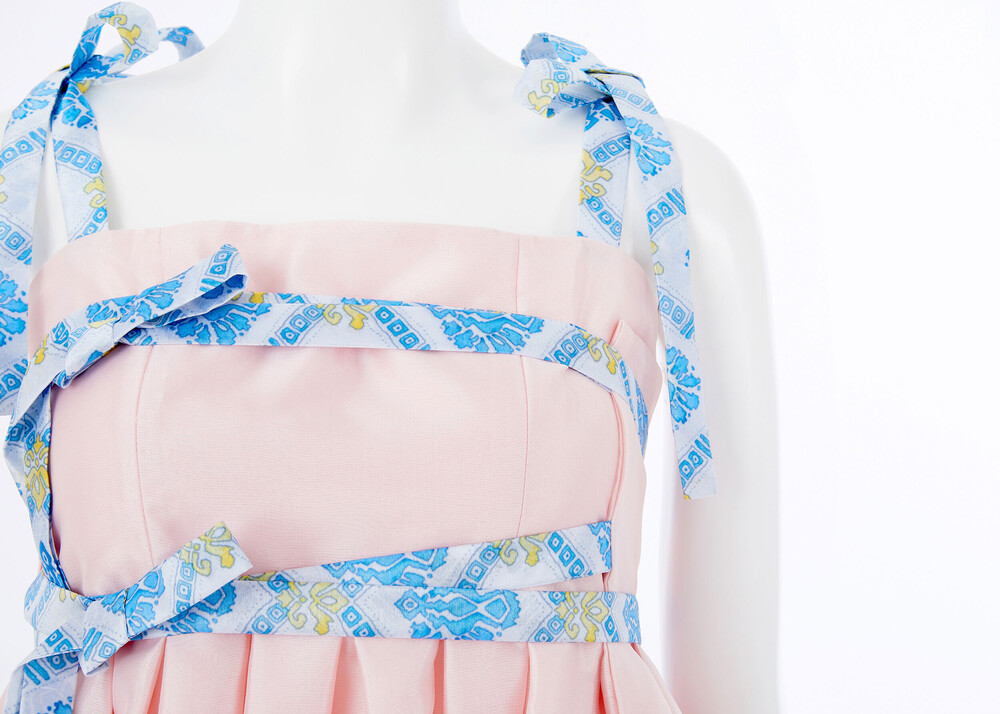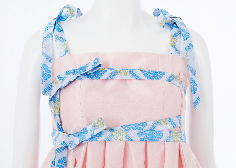 말기 가슴 끈과 어깨 끈의 패턴 그리고 단 차이가 포인트인 드레스 입니다.
