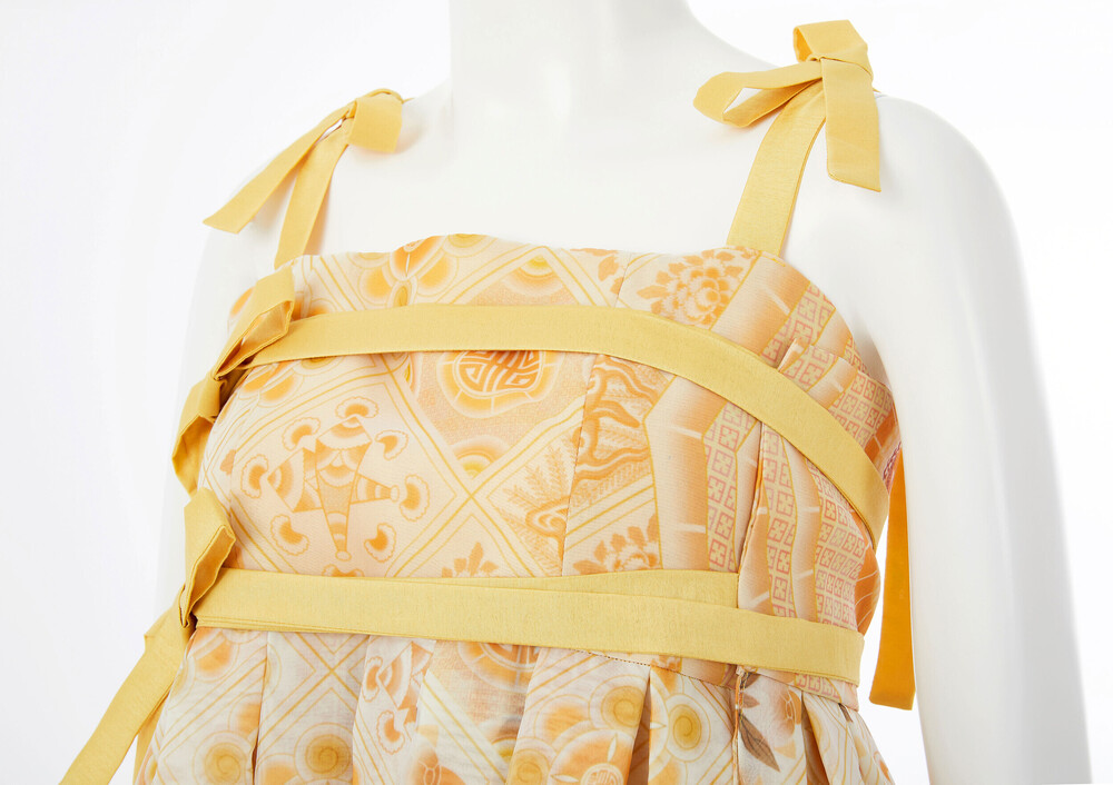 노랑 봉황문 드레스는 조선의 궁중보자기 문양인 봉황문 인문보 문양의 노란색 드레스 입니다.
