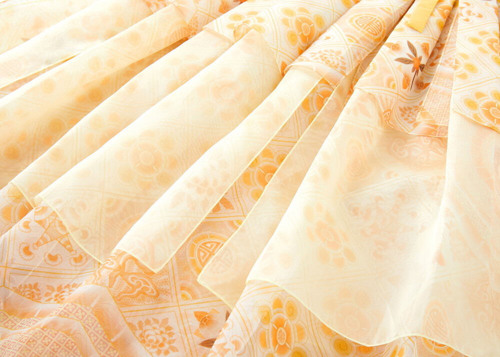 전체적으로 노란 컬러의 봉황문 패턴이 들어가 있지만 패턴 사이 연 노랑 포인트로 오묘하고 귀여운 느낌을 줍니다.