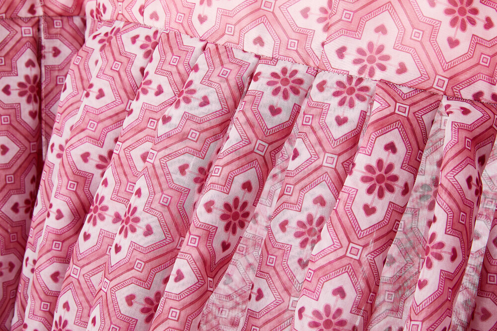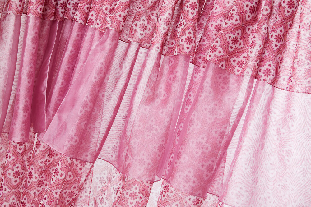 전체적으로 핑크 컬러의 국화 패턴이 들어가 있지만 패턴 사이 핑크 포인트로 오묘하고 귀여운 느낌을 줍니다.