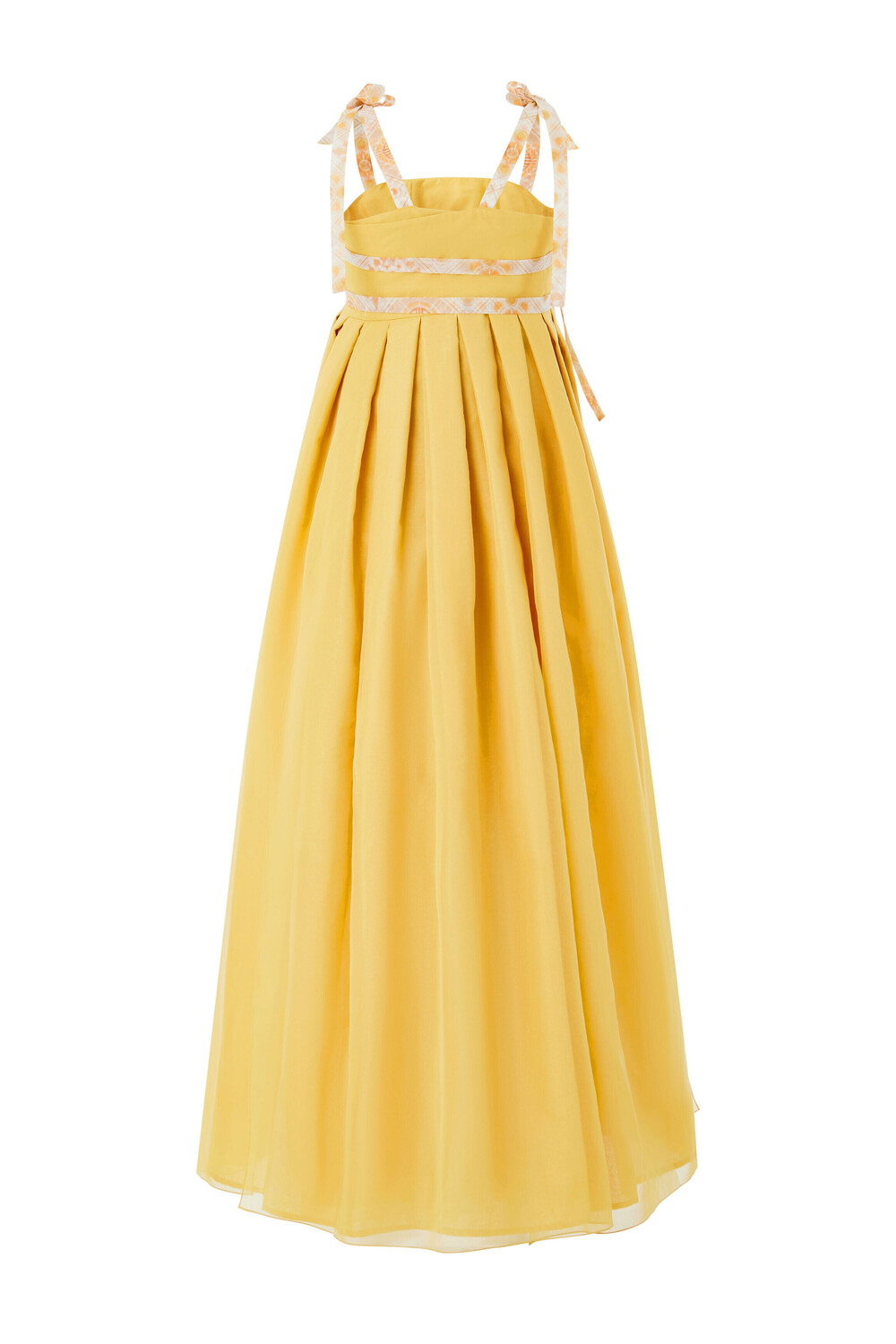 말기가슴끈과 어깨끈에 포인트로 들어가 있는 노란색 드레스 입니다.