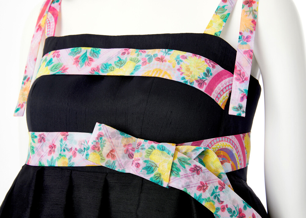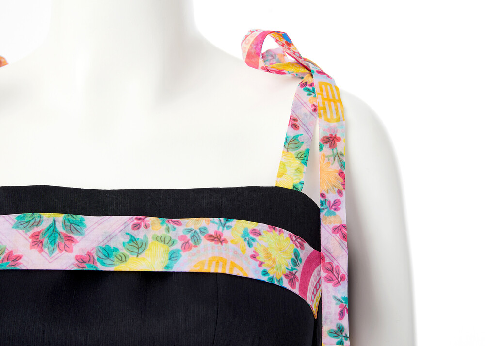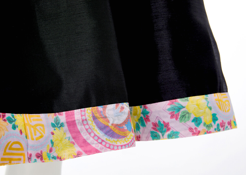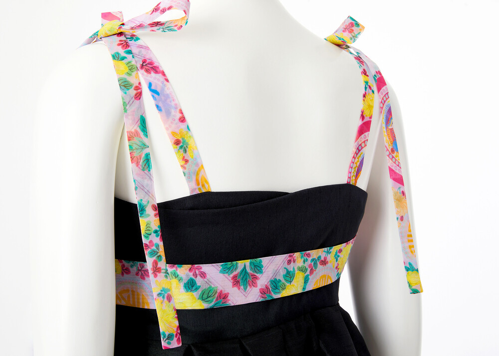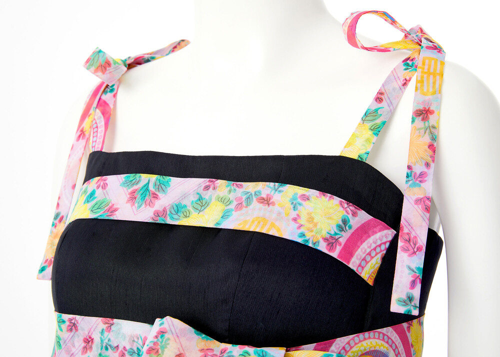 어깨끈과 말기, 아랫단이 쉘핑크 컬러의 뉴봉황문인문보 패턴으로 디자인되어 발랄하고 사랑스러움을 더했습니다.