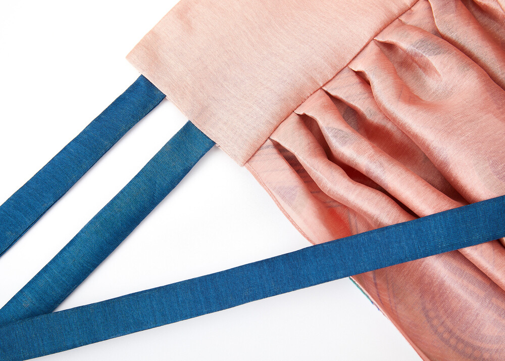 갈래갈래 사이로 단하의 봉황문 패턴이 있고 핑크색 명주 원단으로 고급스러운 느낌을 연출 하실 수 있습니다.