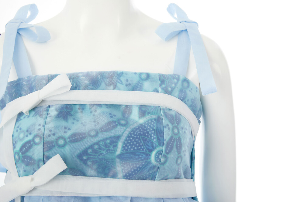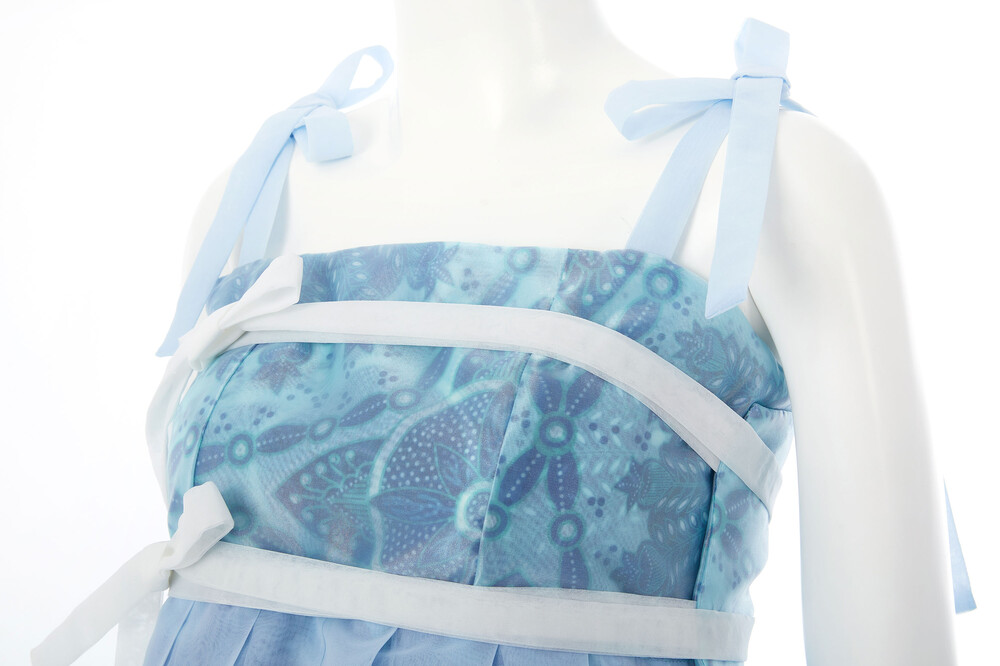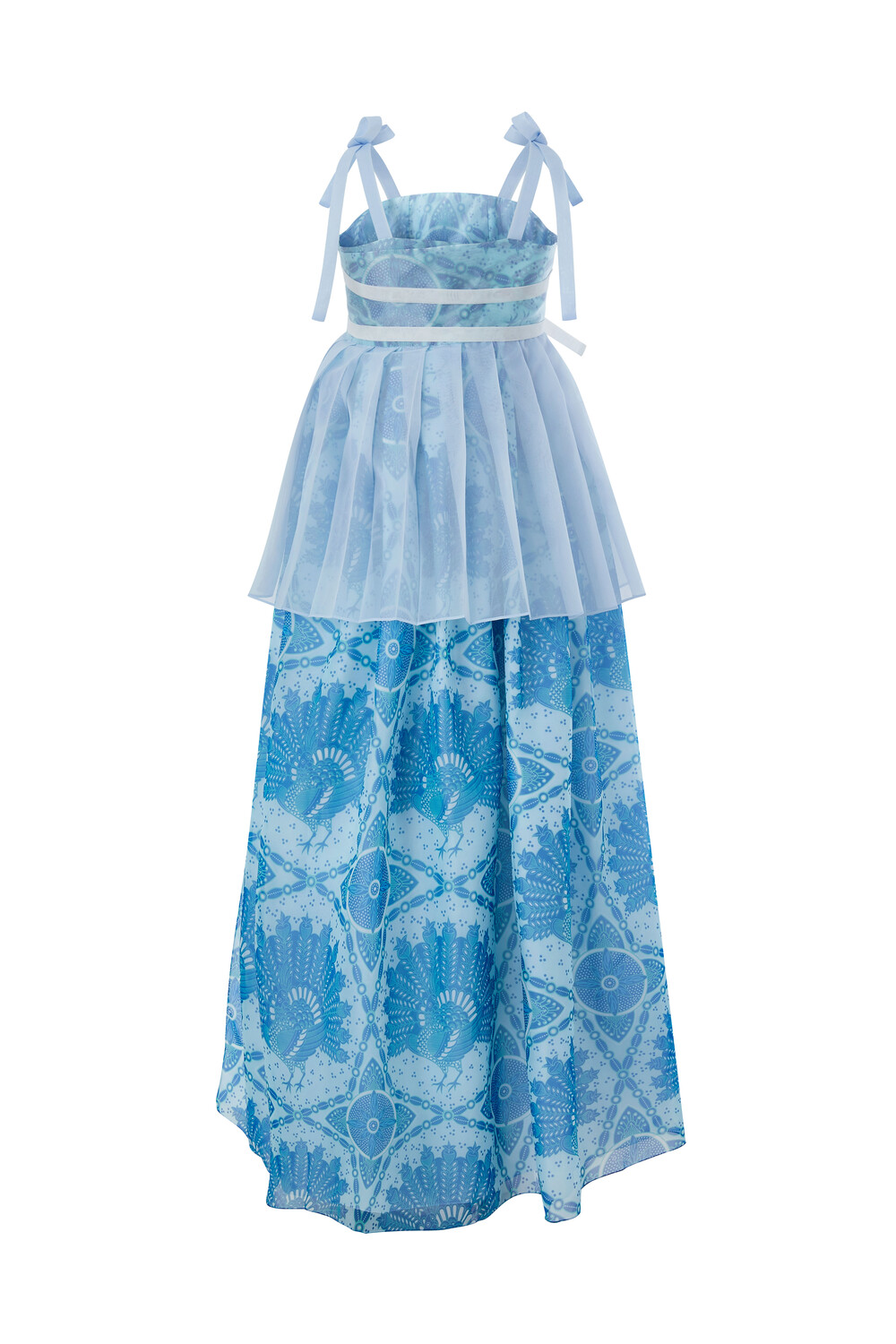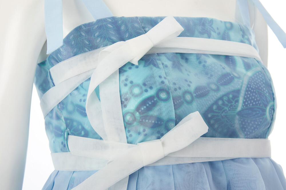 블루 화문 피날레는 궁중보자기인 봉황문 인문보홍국에서 영감을 받아 리디자인한 패턴으로 제작 된 드레스 입니다.