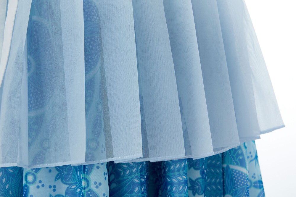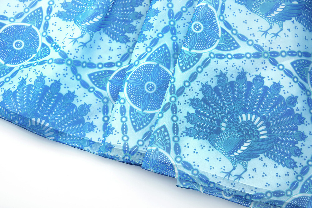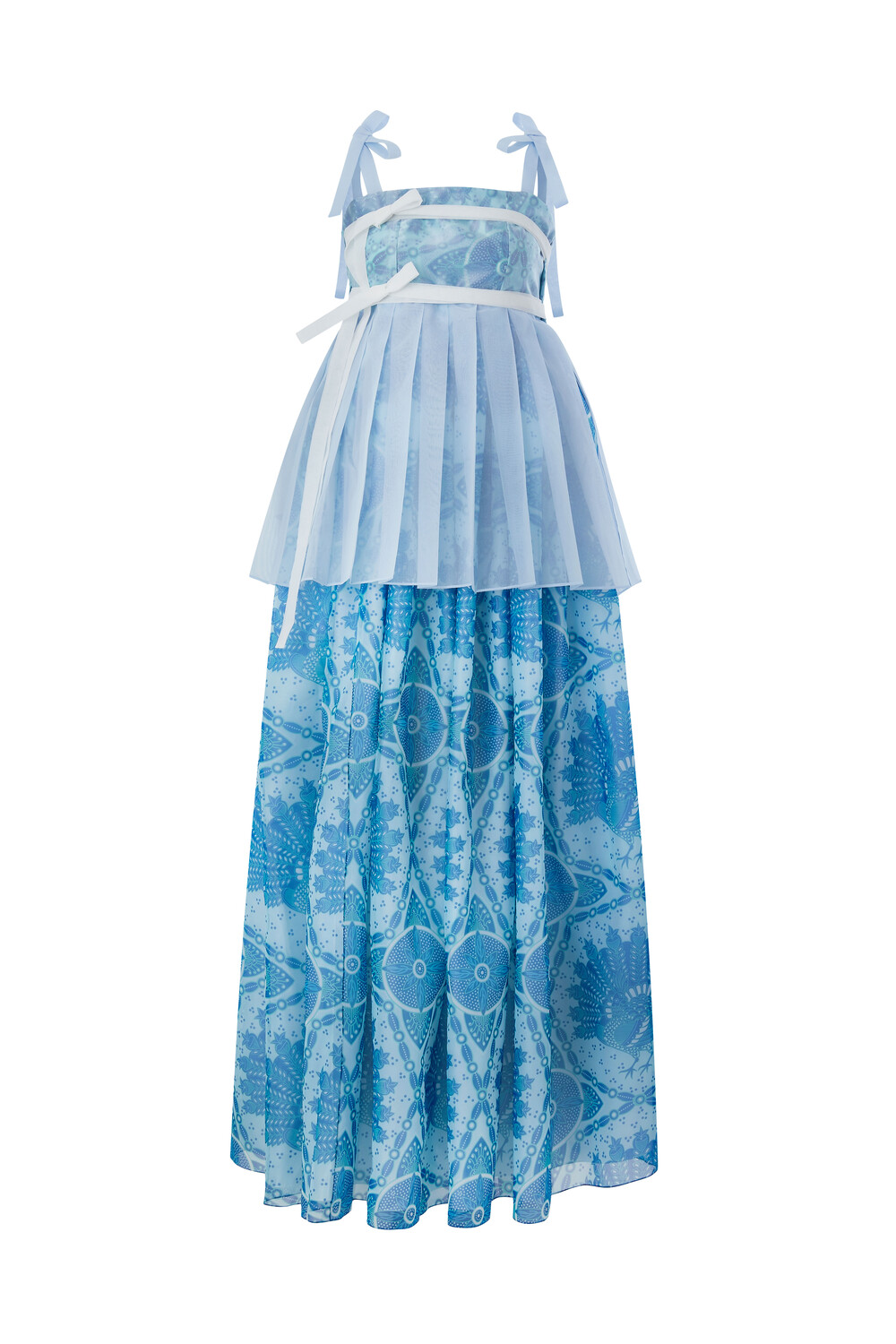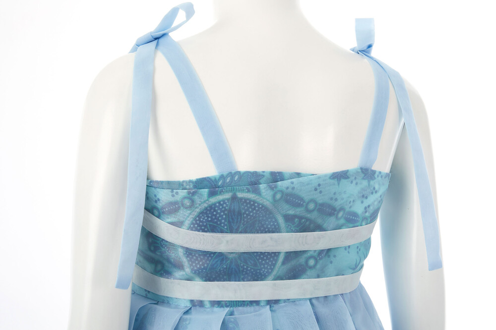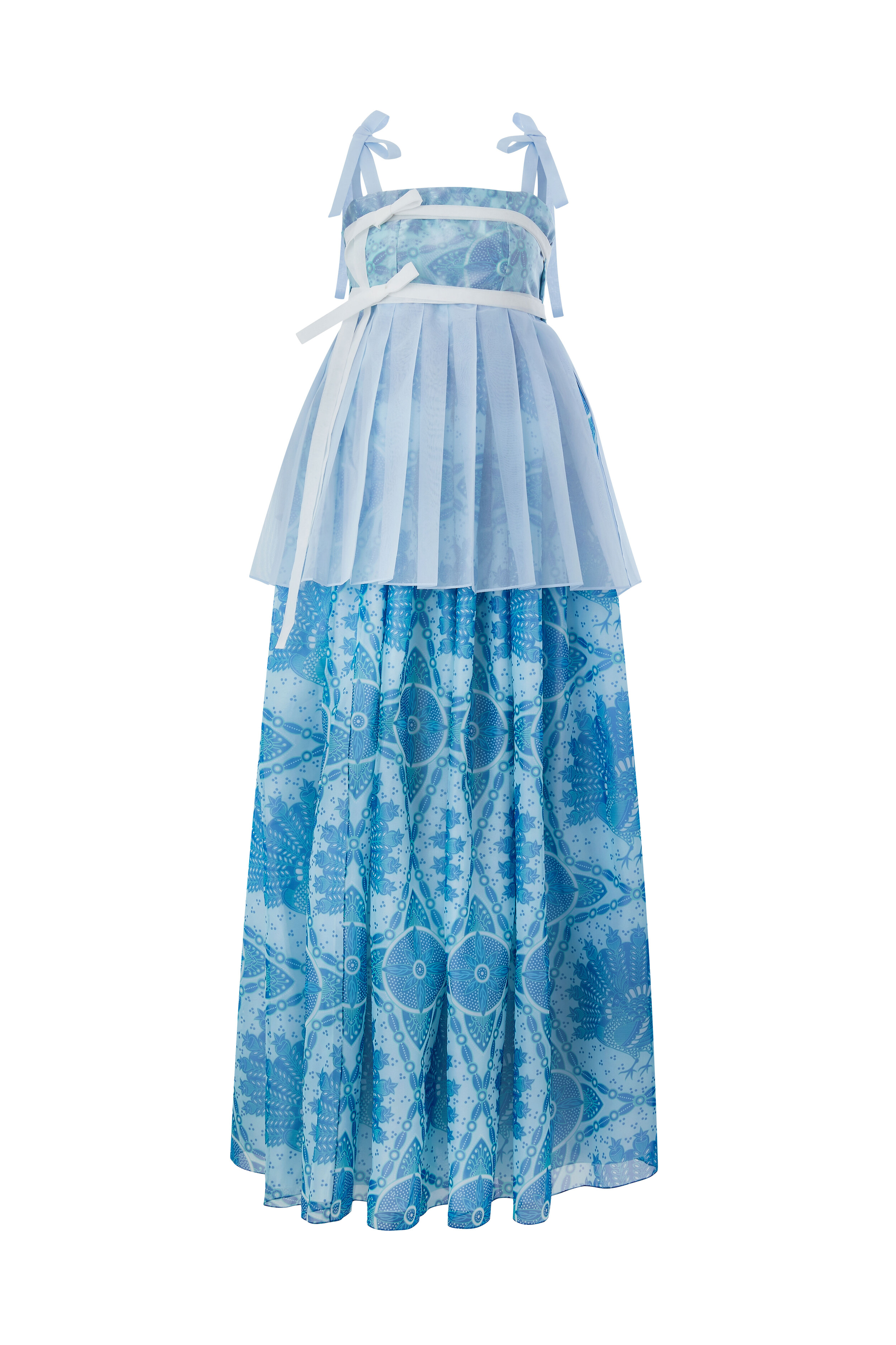 블루 화문 피날레는 궁중보자기인 봉황문 인문보홍국에서 영감을 받아 리디자인한 패턴으로 제작 된 드레스 입니다.