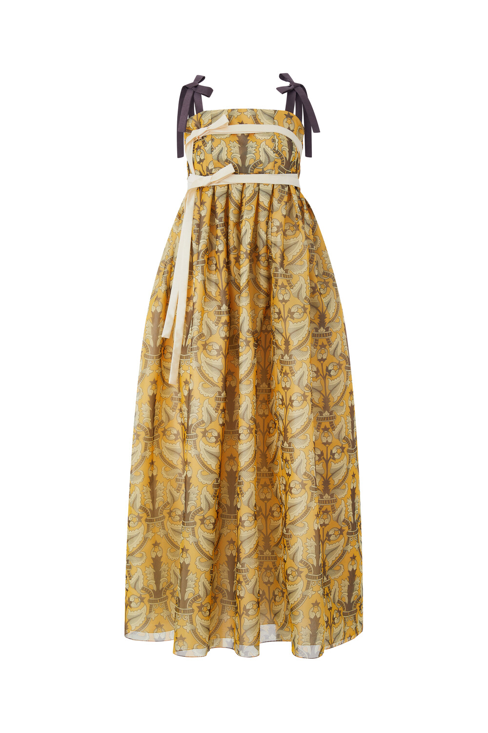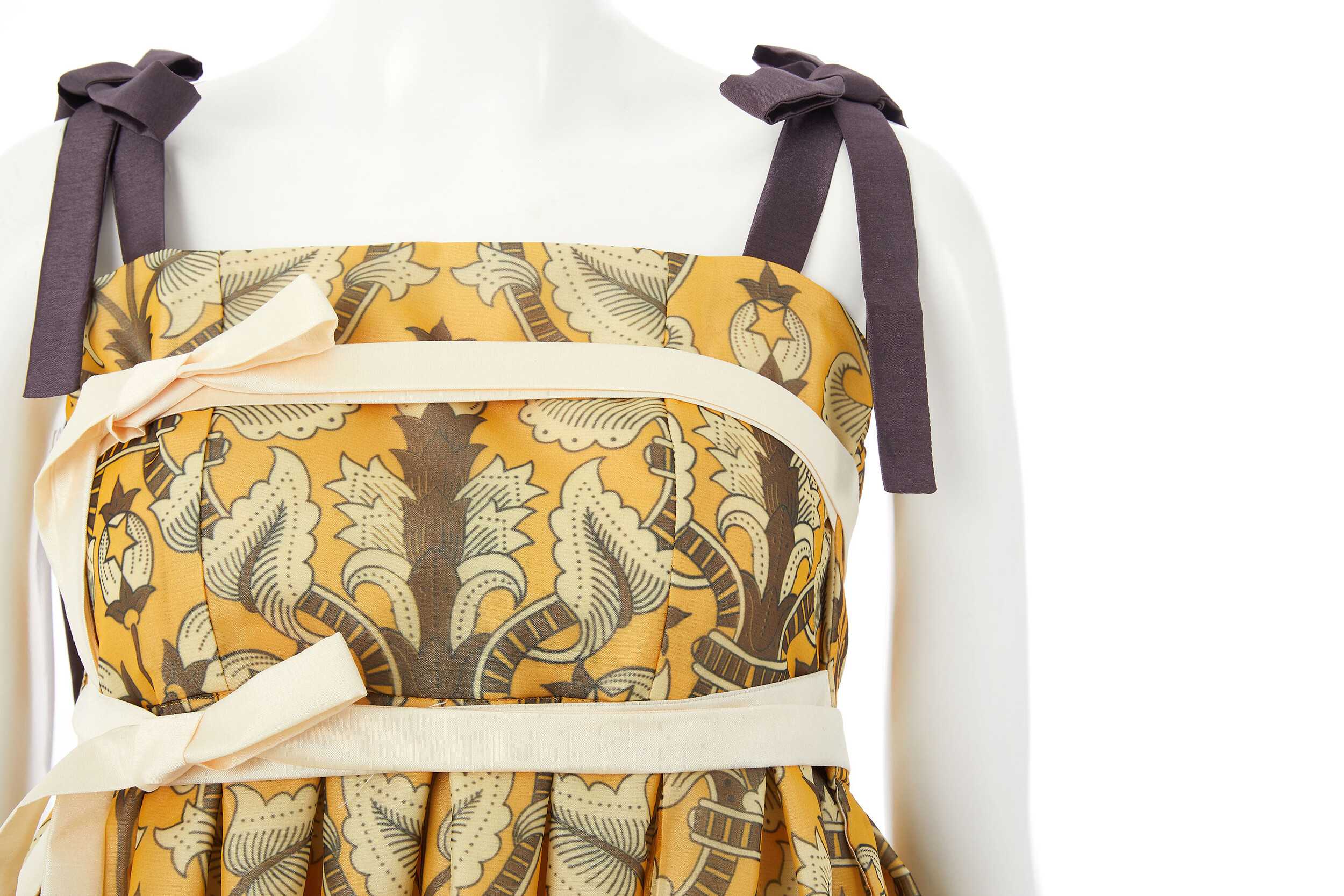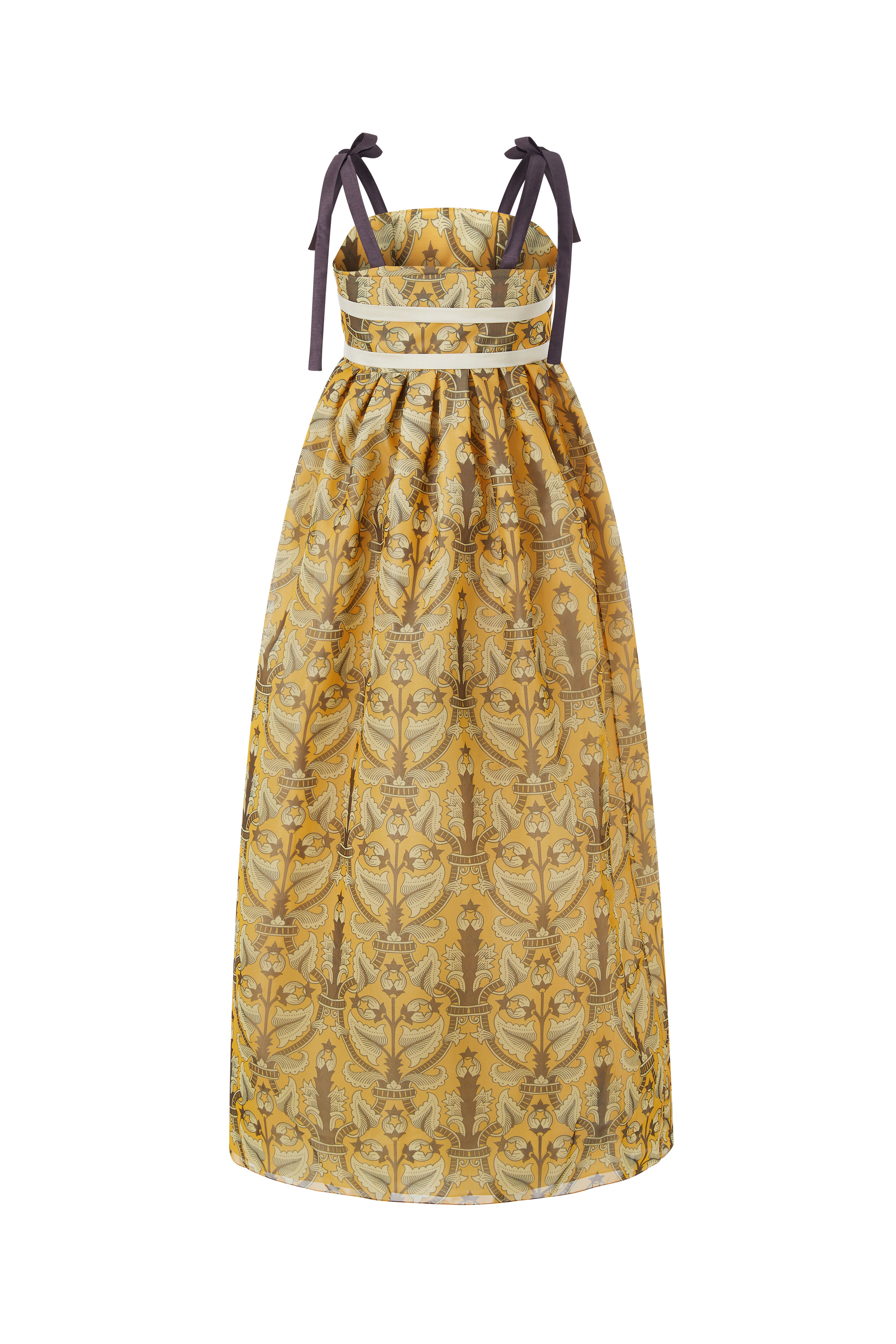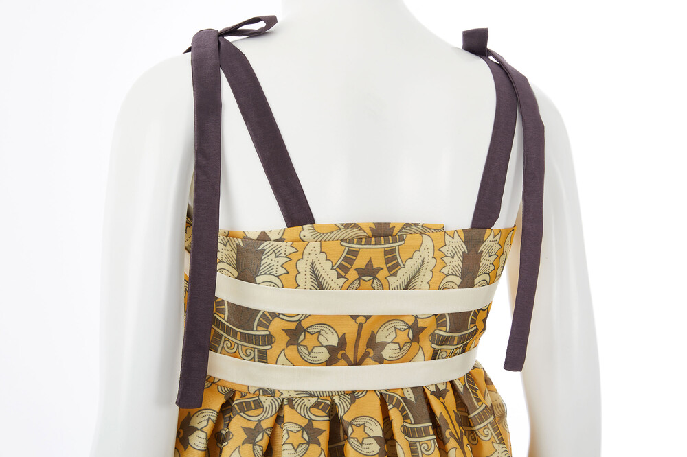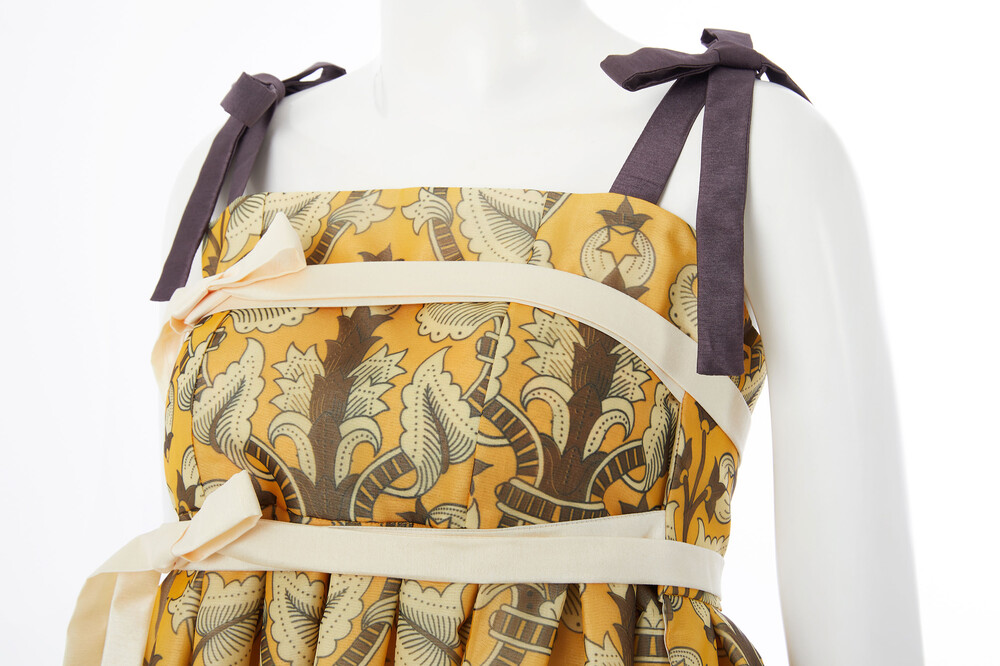 옐로우 국화 드레스는 조선 궁중 도배지 문양인 노랑 국화문에서 영감을 받아 리디자인한 패턴으로 제작 된 드레스 입니다.