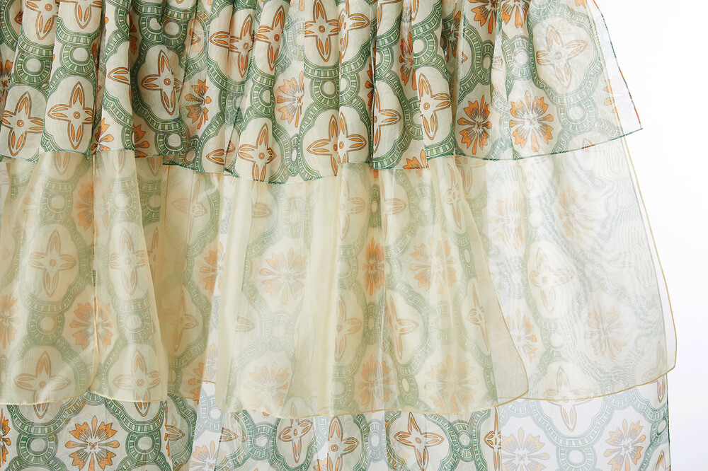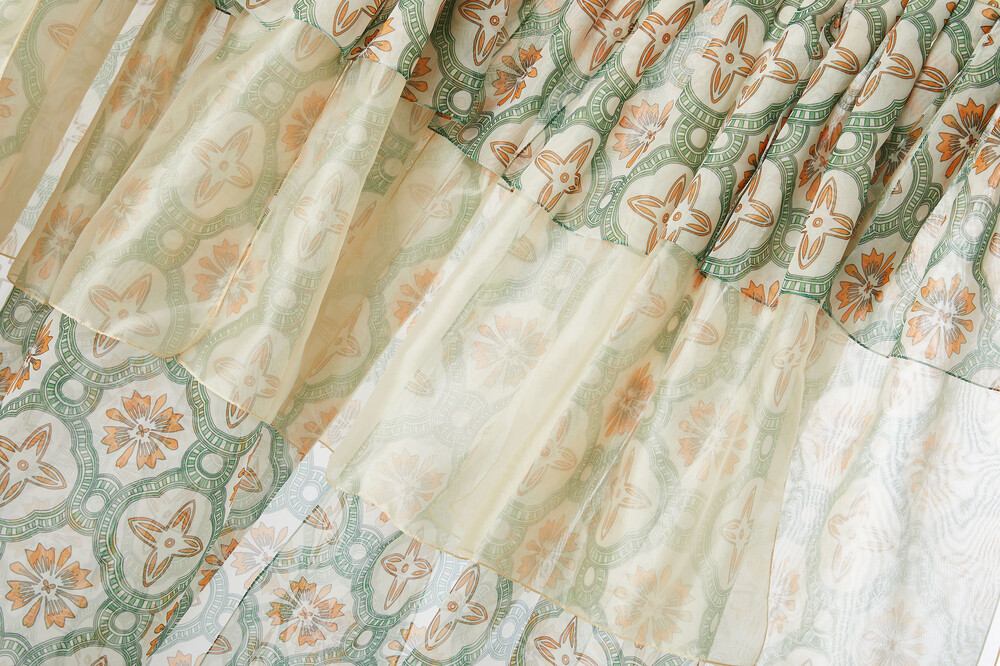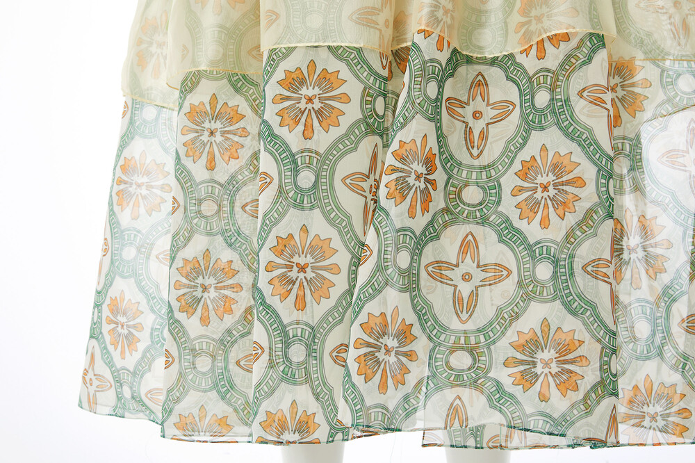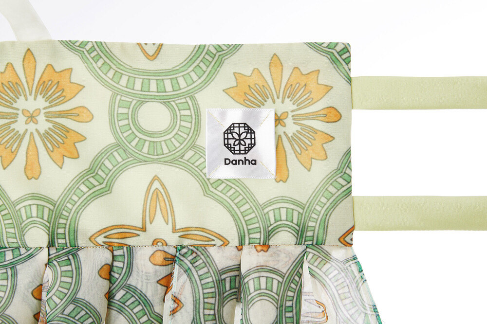 전체적으로 그린 컬러의 나비문 패턴이 들어가 있지만 패턴 사이 옐로우 포인트로 오묘하고 귀여운 느낌을 줍니다.