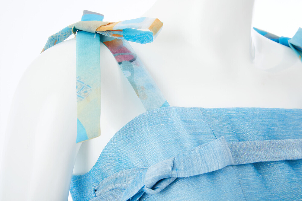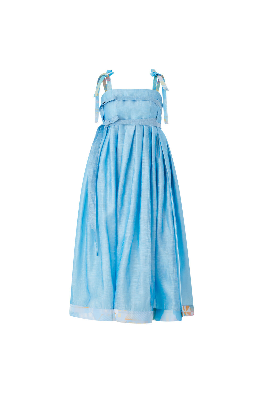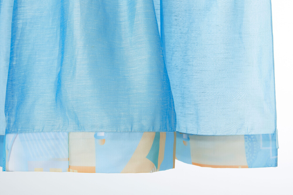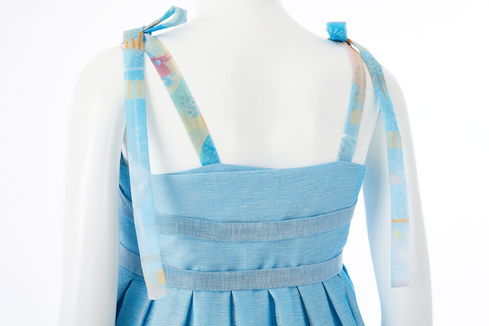밑단이 자연스럽게 퍼져 예쁜 핏을 자랑하고, 어깨 끈과 아랫단은 한국 대표 관광지 부산을 포인트로한 패턴을 넣어 사랑스러움을 더했습니다.