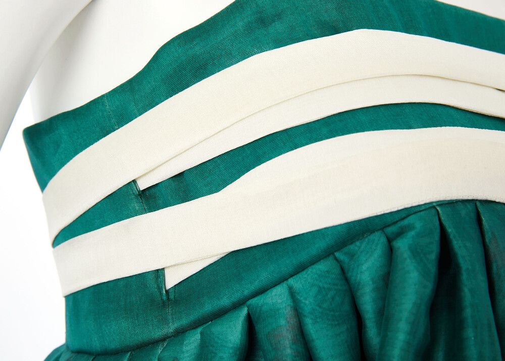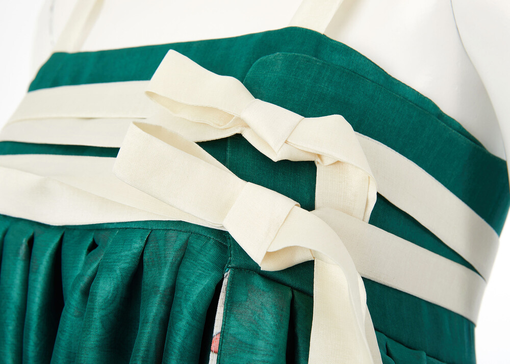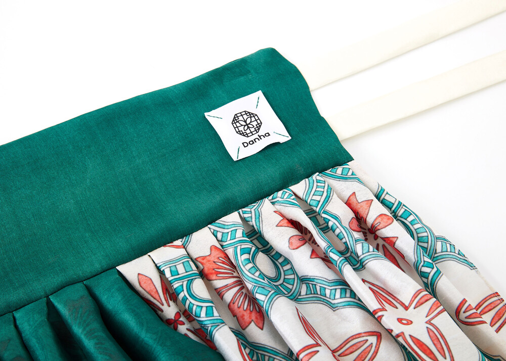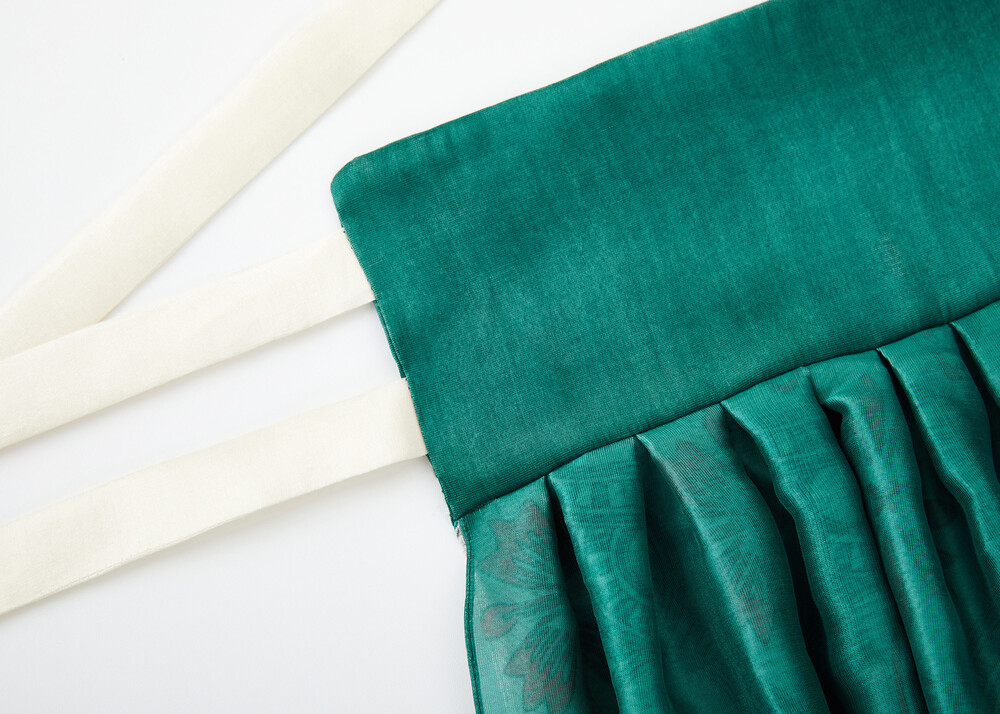 갈래갈래 사이로 단하의 나비문 패턴이 있고 초록색 명주 원단으로 고급스러운 느낌을 연출 하실 수 있습니다.