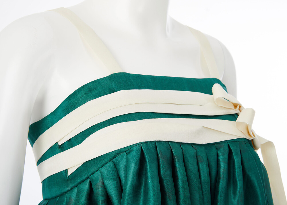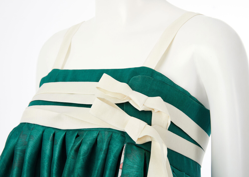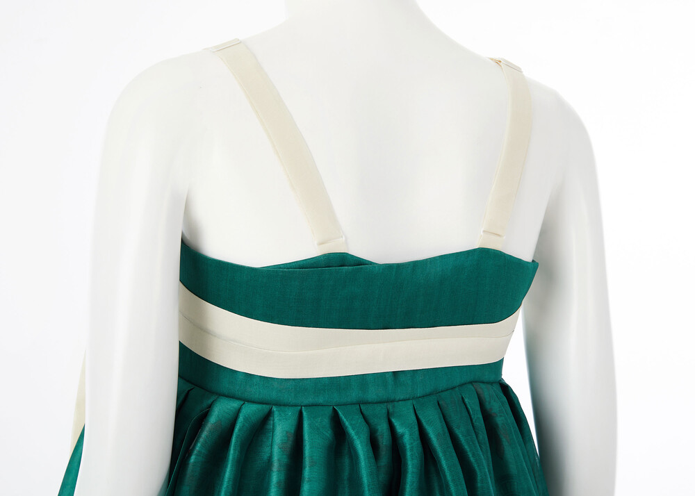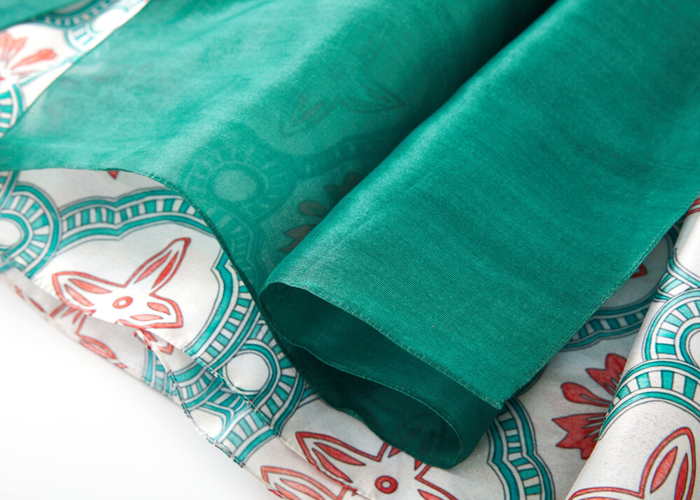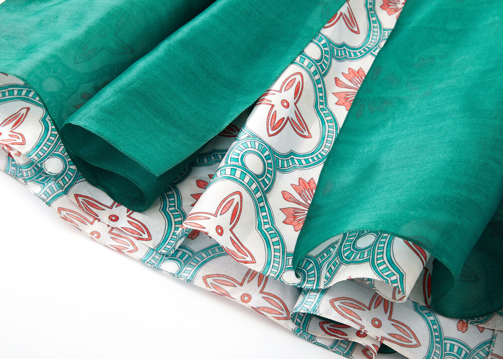 갈래갈래 사이로 단하의 나비문 패턴이 있고 초록색 명주 원단으로 고급스러운 느낌을 연출 하실 수 있습니다.