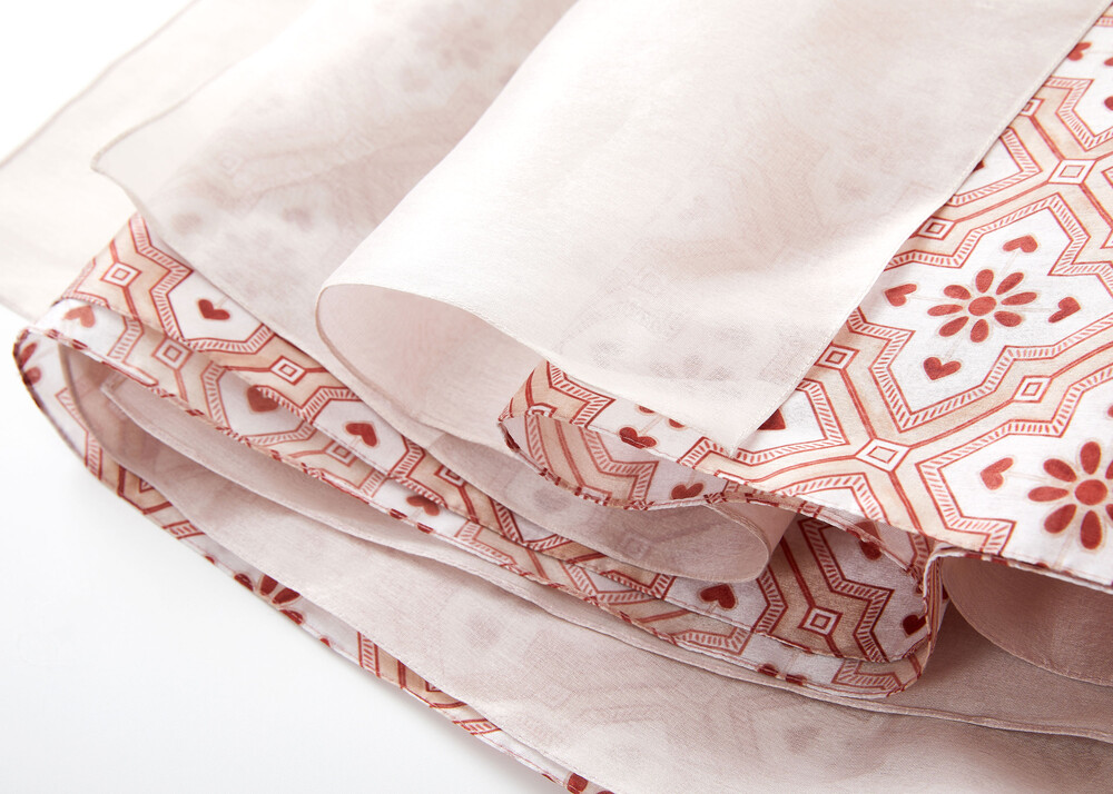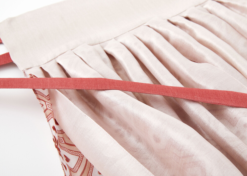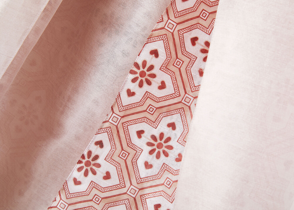 갈래갈래 사이로 단하의 홍국화백분문 패턴이 있고 살구색 명주 원단으로 고급스러운 느낌을 연출 하실 수 있습니다.