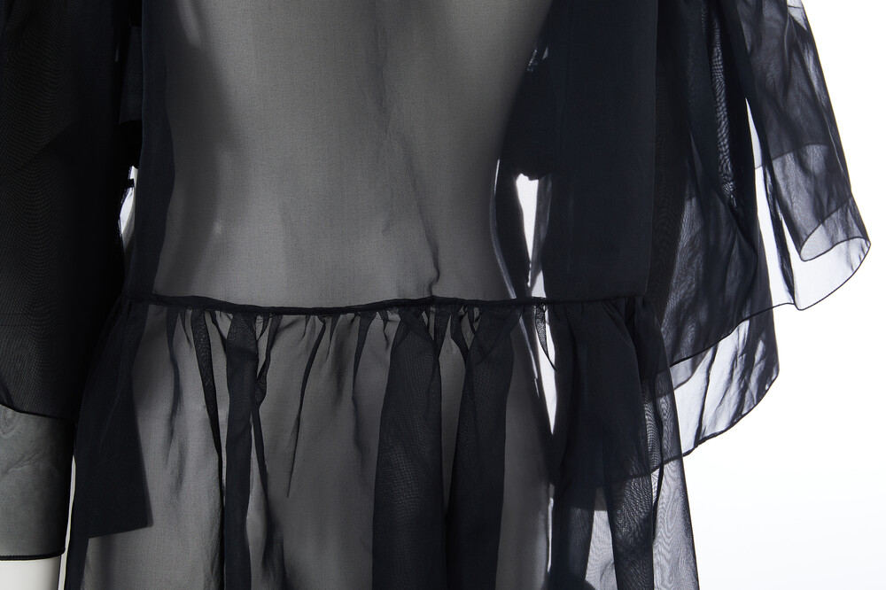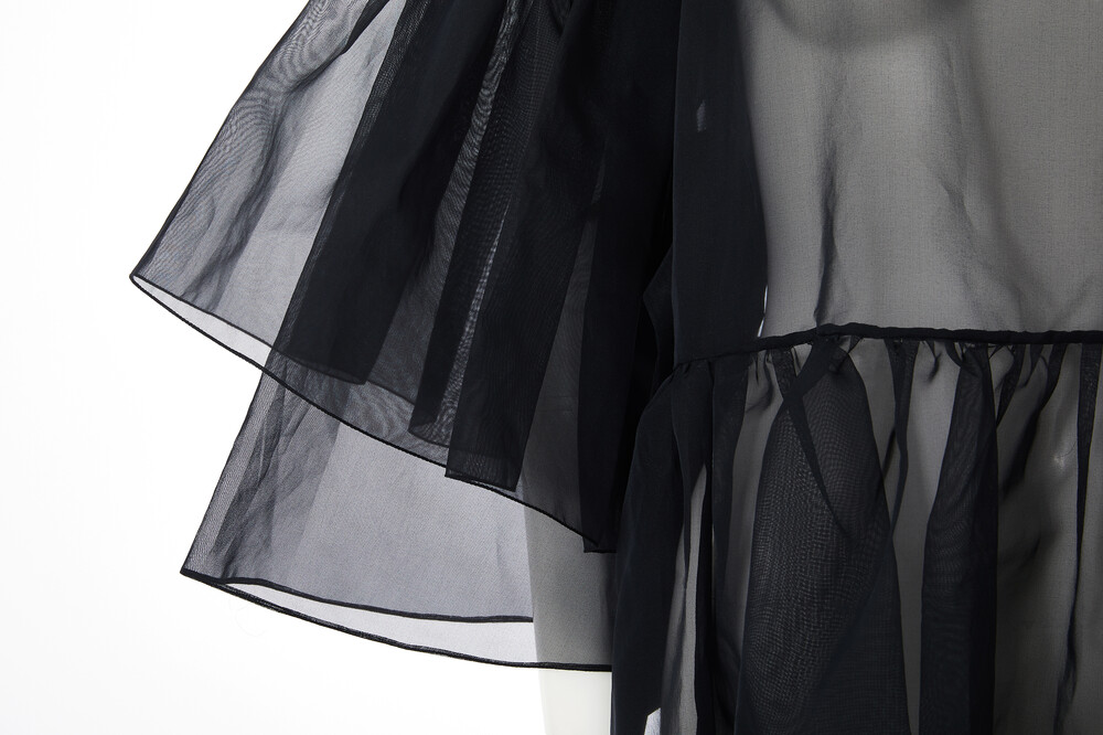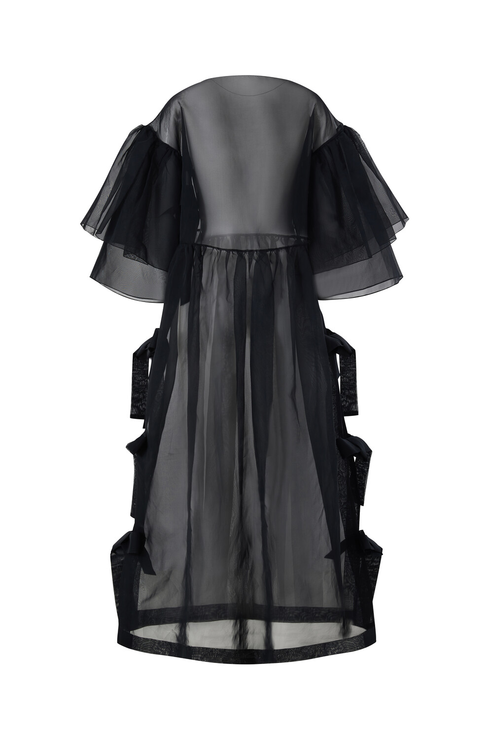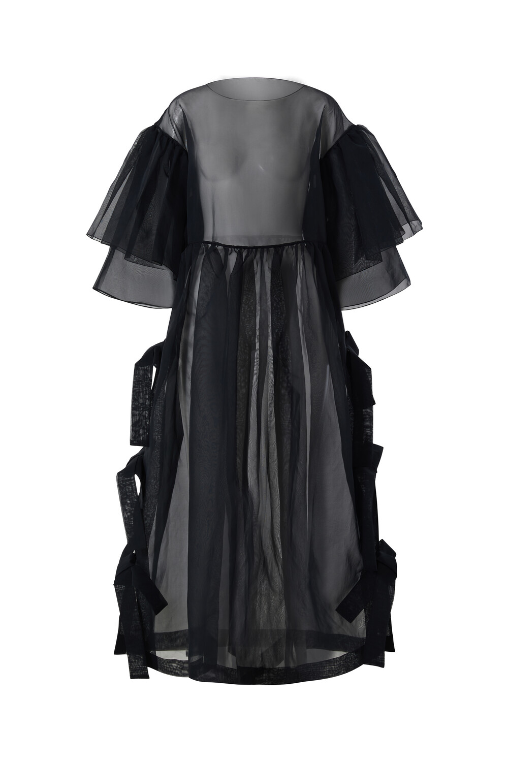 드롭숄더 프릴 드레스는 드롭 숄더 라인이 우아한 실루엣을 연출하며, 프릴 소매와 리본 디테일이 사랑스러운 포인트를 더한 아이템입니다. 은은한 비침이 있는 가벼운 소재로 제작되어 레이어드 스타일링에 적합하며, 단독으로도 세련된 매력을 자아냅니다. 특별한 날부터 데일리룩까지 다양한 연출이 가능한 활용도 높은 드레스입니다.