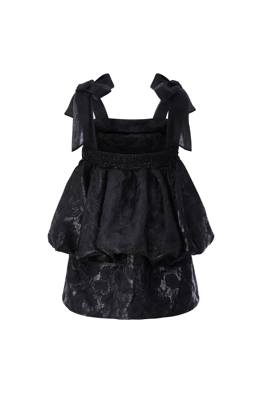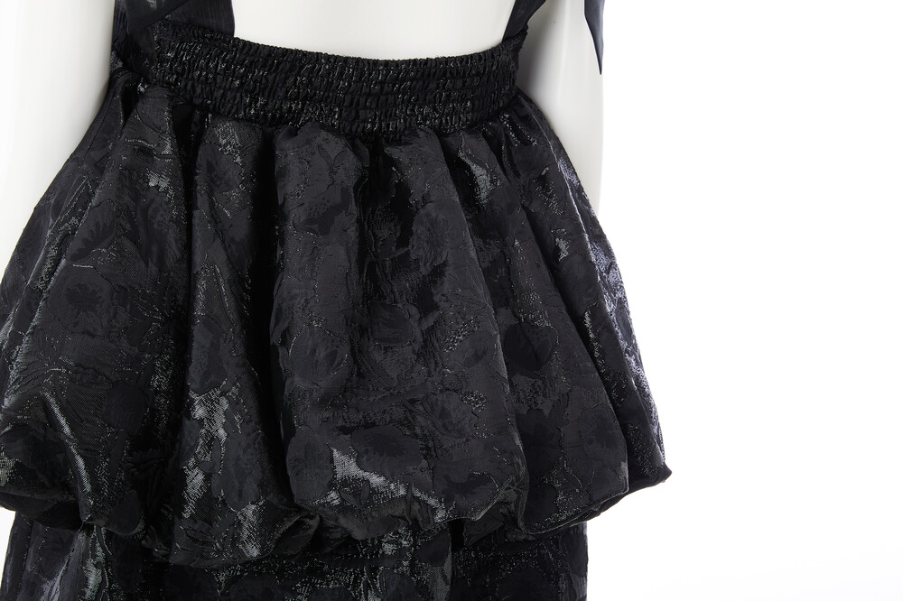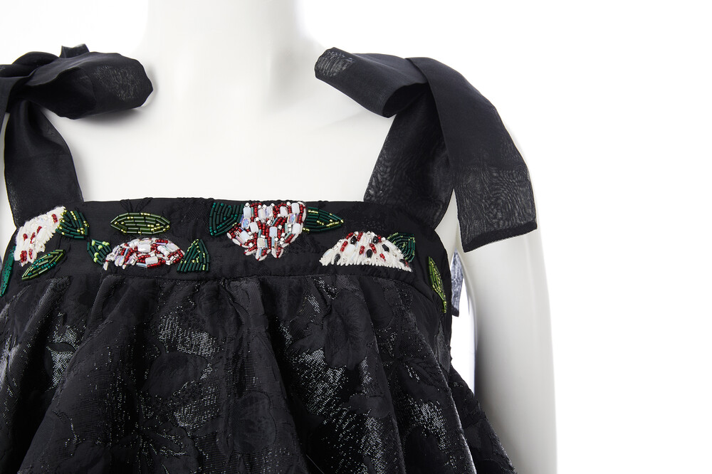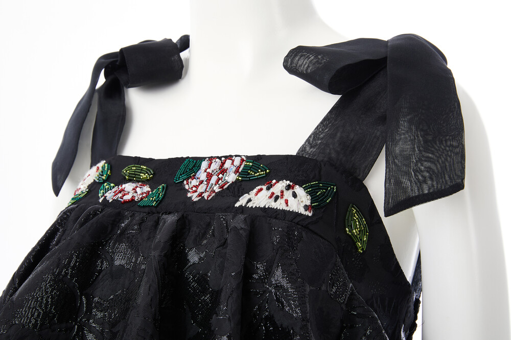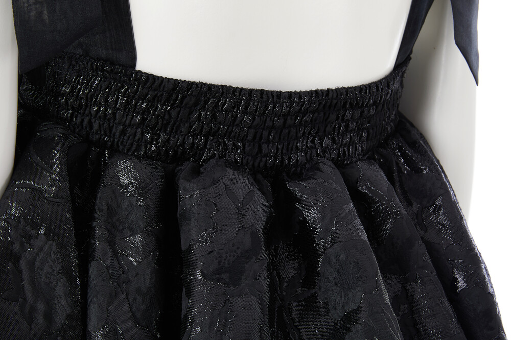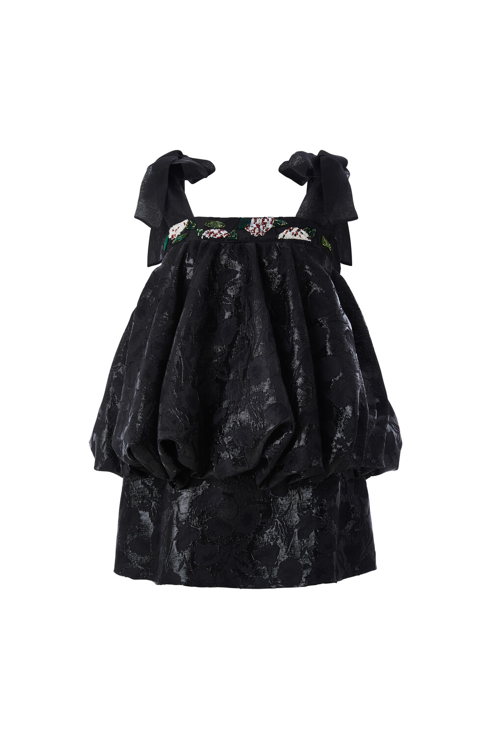 자가드 자수 벌룬 쿠튀르 드레스는 자가드 소재 특유의 유니크함에 이본느 작가님의 정교한 자수가 더해져 고급스러운 분위기를 자아냅니다. 벌룬 형태의 실루엣과 어깨 리본 디테일이 사랑스러운 포인트를 더하며, 리본으로 높이 조절이 가능해 착용감도 우수합니다.
