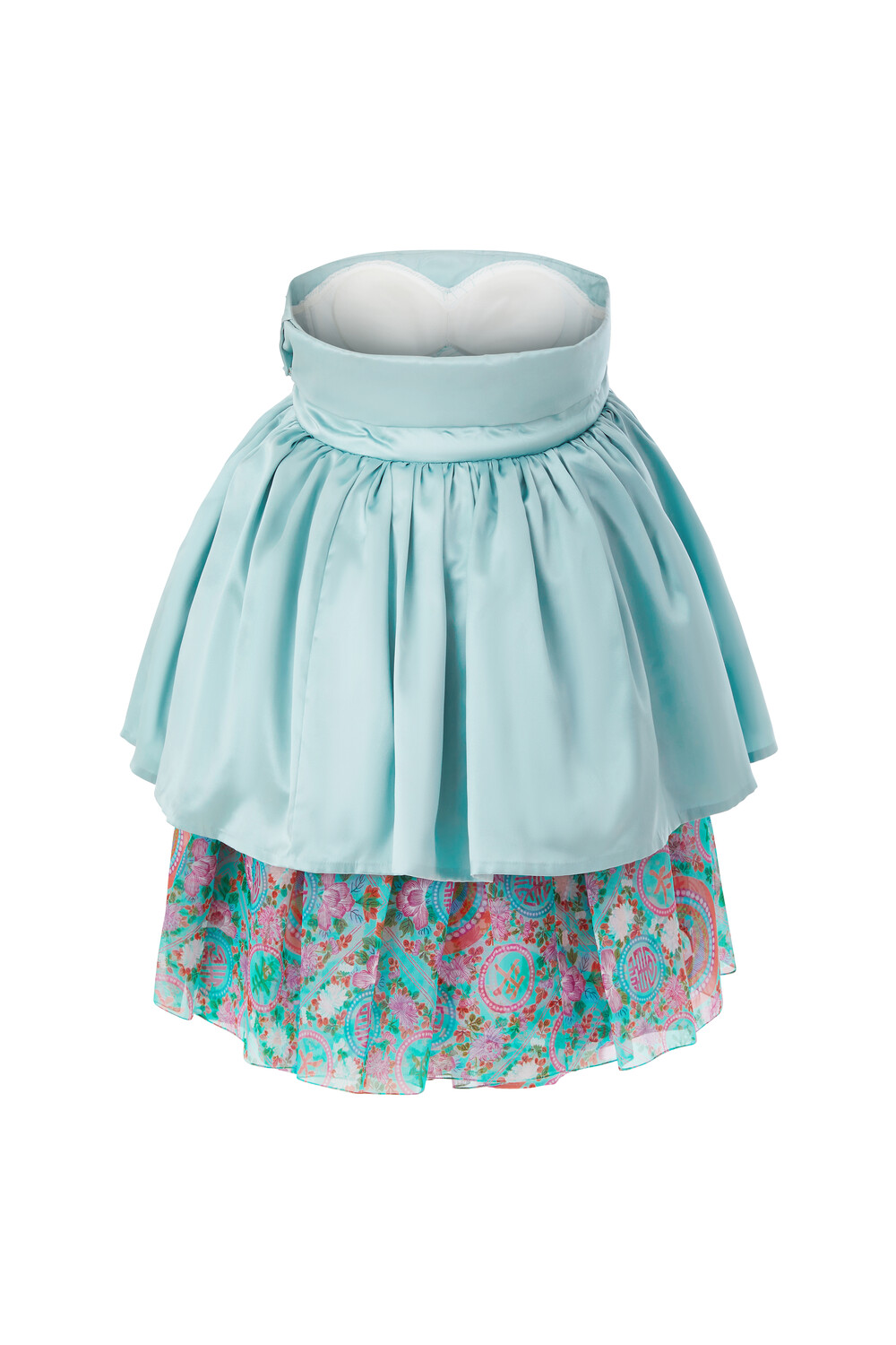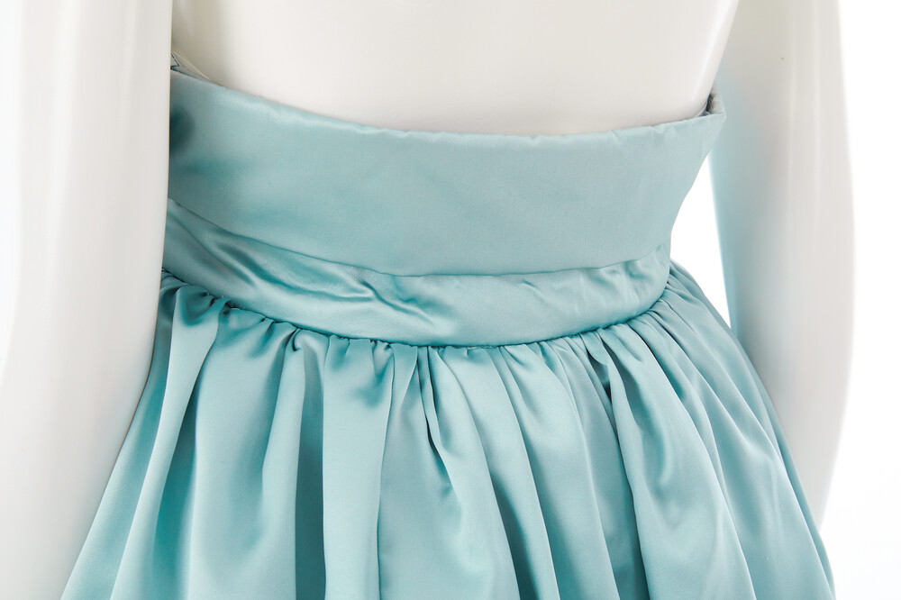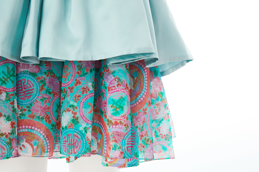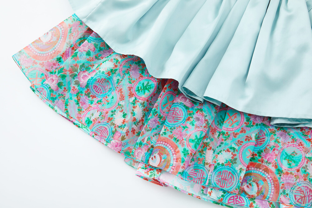 태평성대 자수 쿠튀르 미니 드레스는 가슴 부분의 정교한 자수가 고급스러움을 더하며, 원단의 은은한 광택이 우아한 분위기를 자아냅니다. 치마단에 배색된 태평성대 민트 패턴이 사랑스러운 포인트로 돋보이며, 내장된 브라탑 덕분에 속옷을 따로 착용할 필요가 없어 편안한 착용감을 제공합니다.